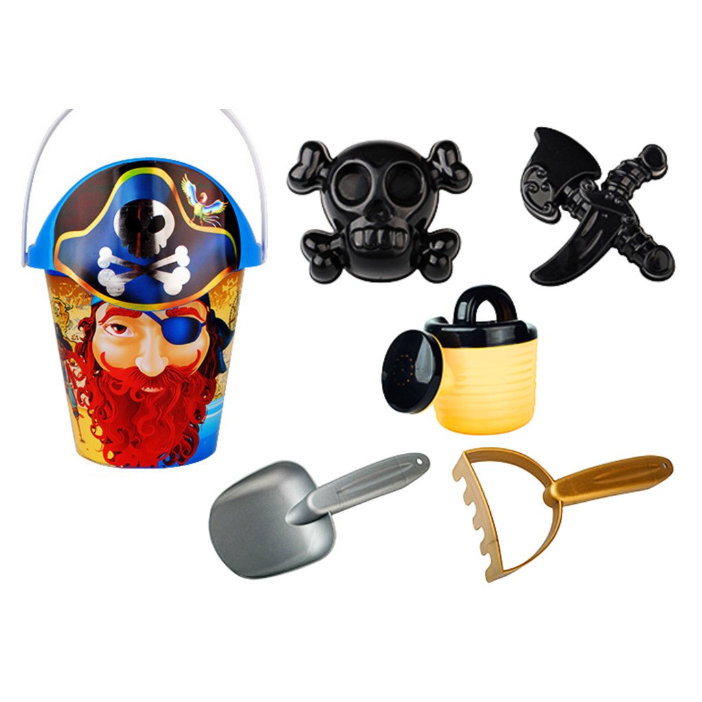 Písková sada Piráti - Kyblík, Konev, Síto, Set 6 dílů je ideální volbou pro malé piráty na pláž nebo do pískoviště.