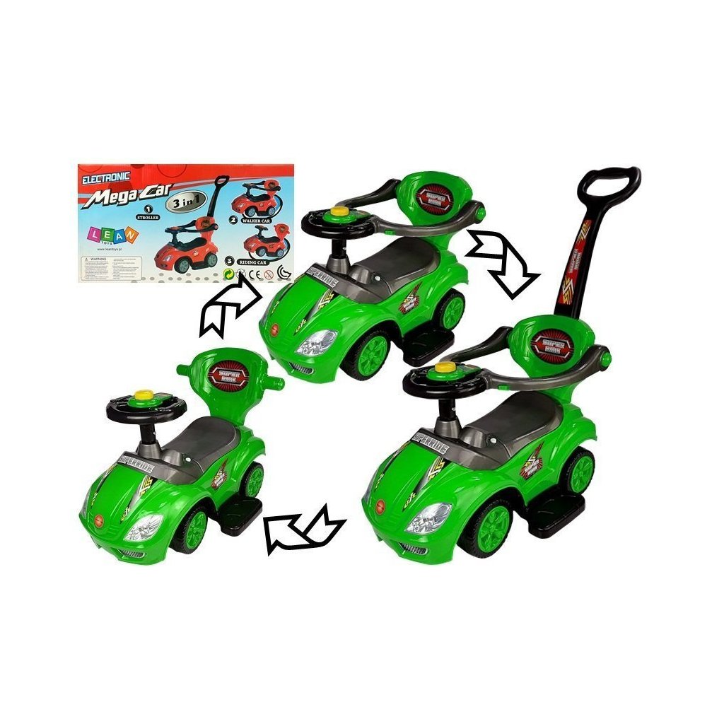 - 3v1 Mega Car Dětské autíčko s tlačnou rukojetí Mega Car bylo navrženo pro energické batolátka, která milují pobyt na čerstvém vzduchu