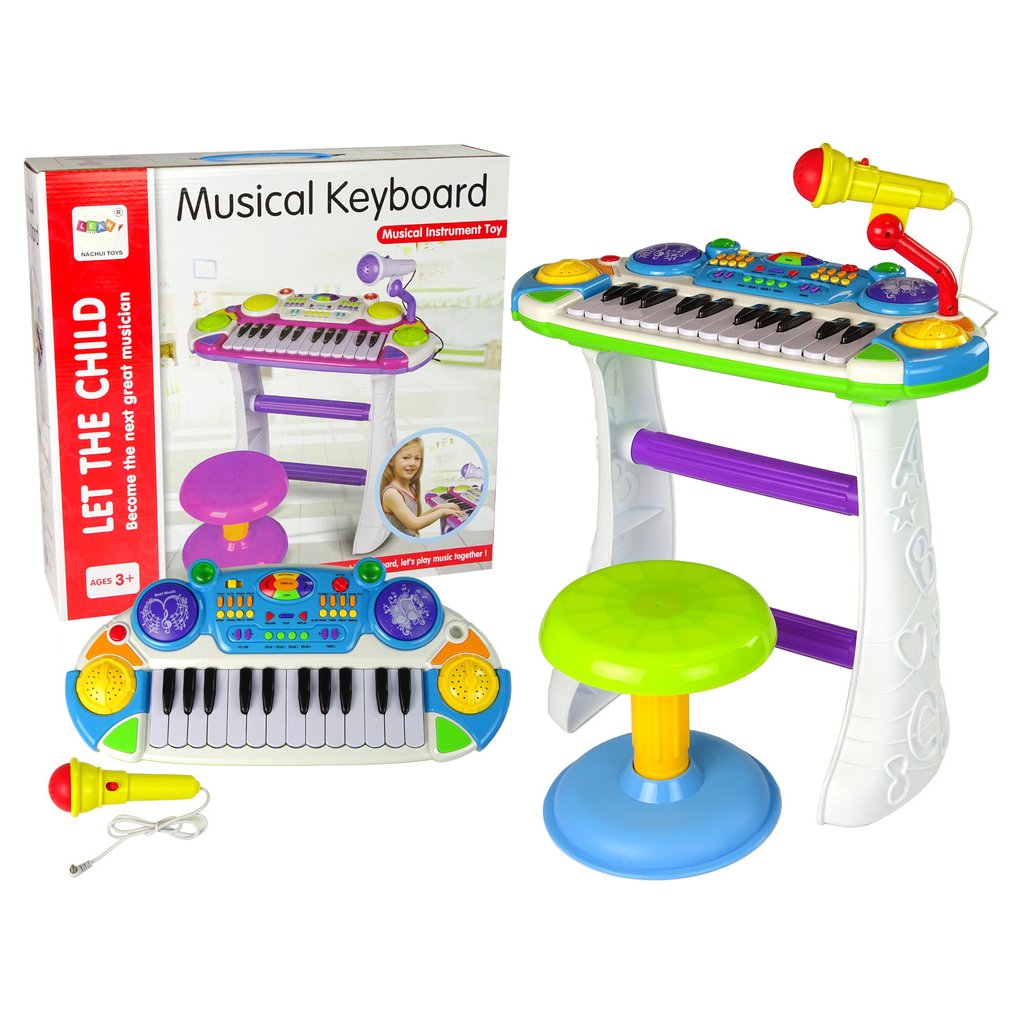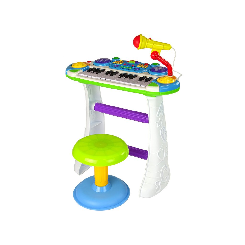 - Klávesový nástroj Sedadlo Mikrofon Modrý Hračky v podobě hudebních nástrojů rozvíjejí kreativitu nejmenších dětí a zároveň ovlivňují jejich koncentraci, trpělivost a koordinaci