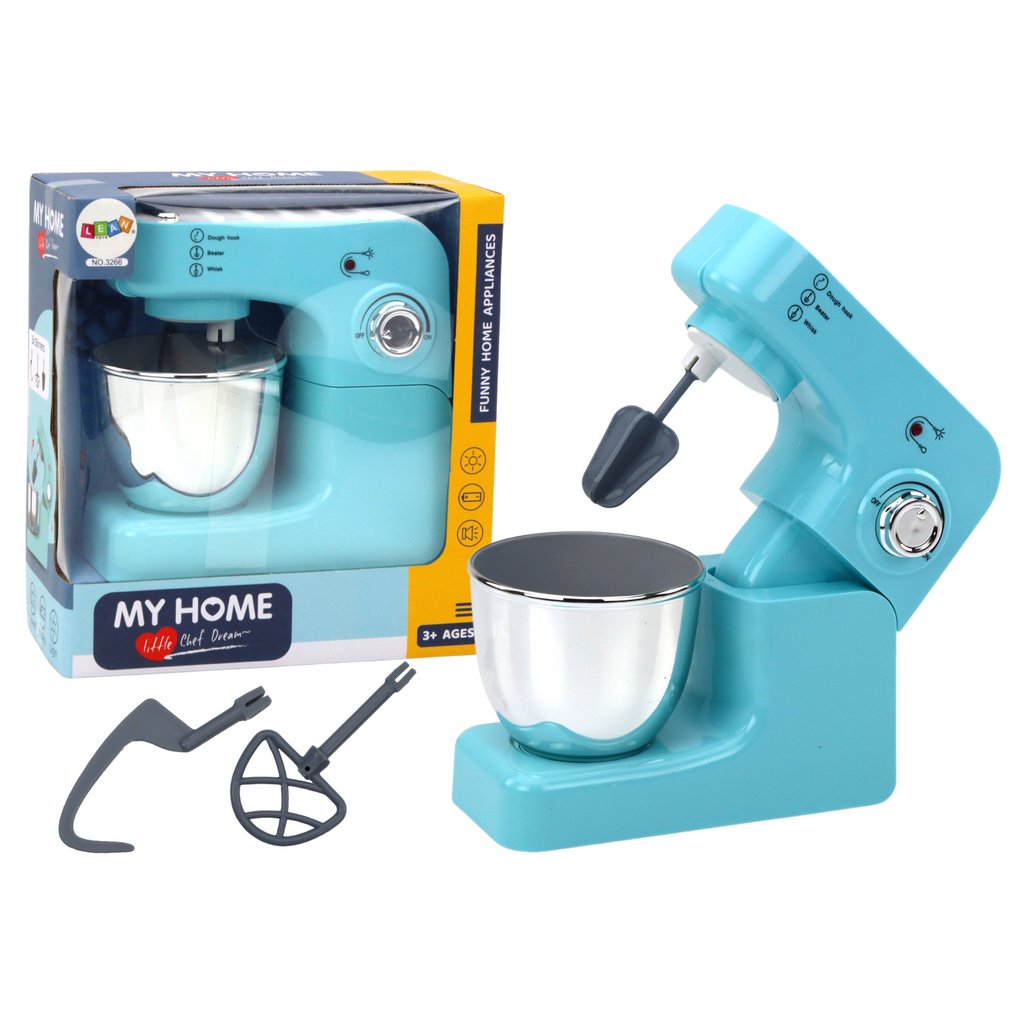 - Robot Planetární Kuchyňský Hračka s třemi nástavci v tyrkysové barvě je ideálním pomocníkem pro malé kuchaře, kteří se chtějí ponořit do kouzelného světa vaření