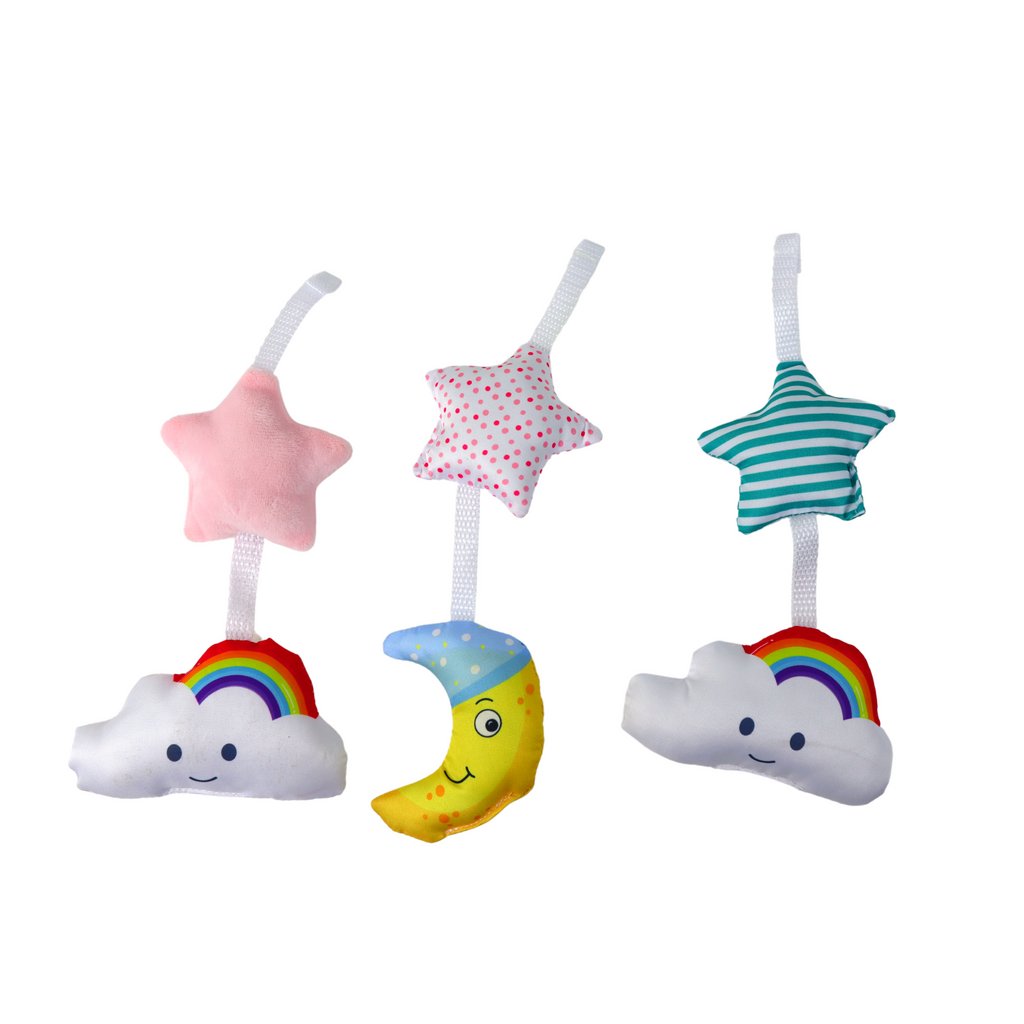 - Sada obsahuje tři plyšové barevné maskoty: měsíc a 2 mráčky zdobené hvězdičkami