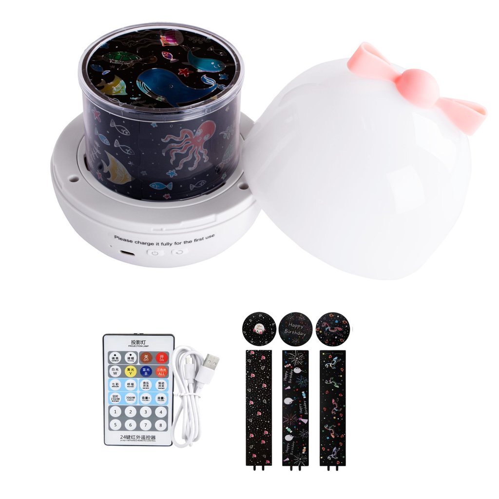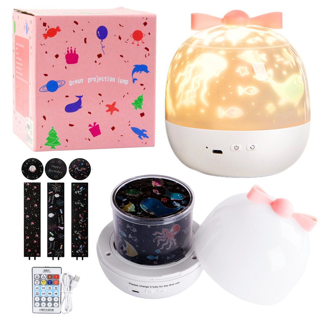 Projektor noční lampa s vyměnitelnými scénami je výjimečné zařízení, které vnáší magickou atmosféru do každého dětského pokoje Díky 6 různým scénám projekce, jako jsou: Všechno nejlepší k narozeninám, dětský trojský kůň