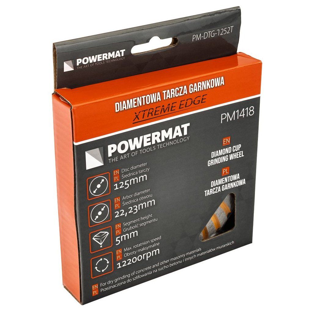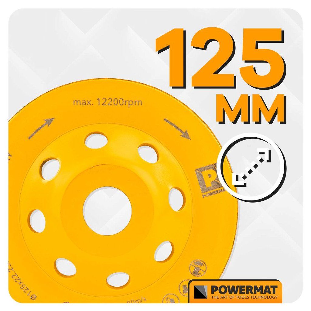 - ✔ Diamantový hrncový brusný kotouč POWERMAT PM-DTG-1252T 125 mm