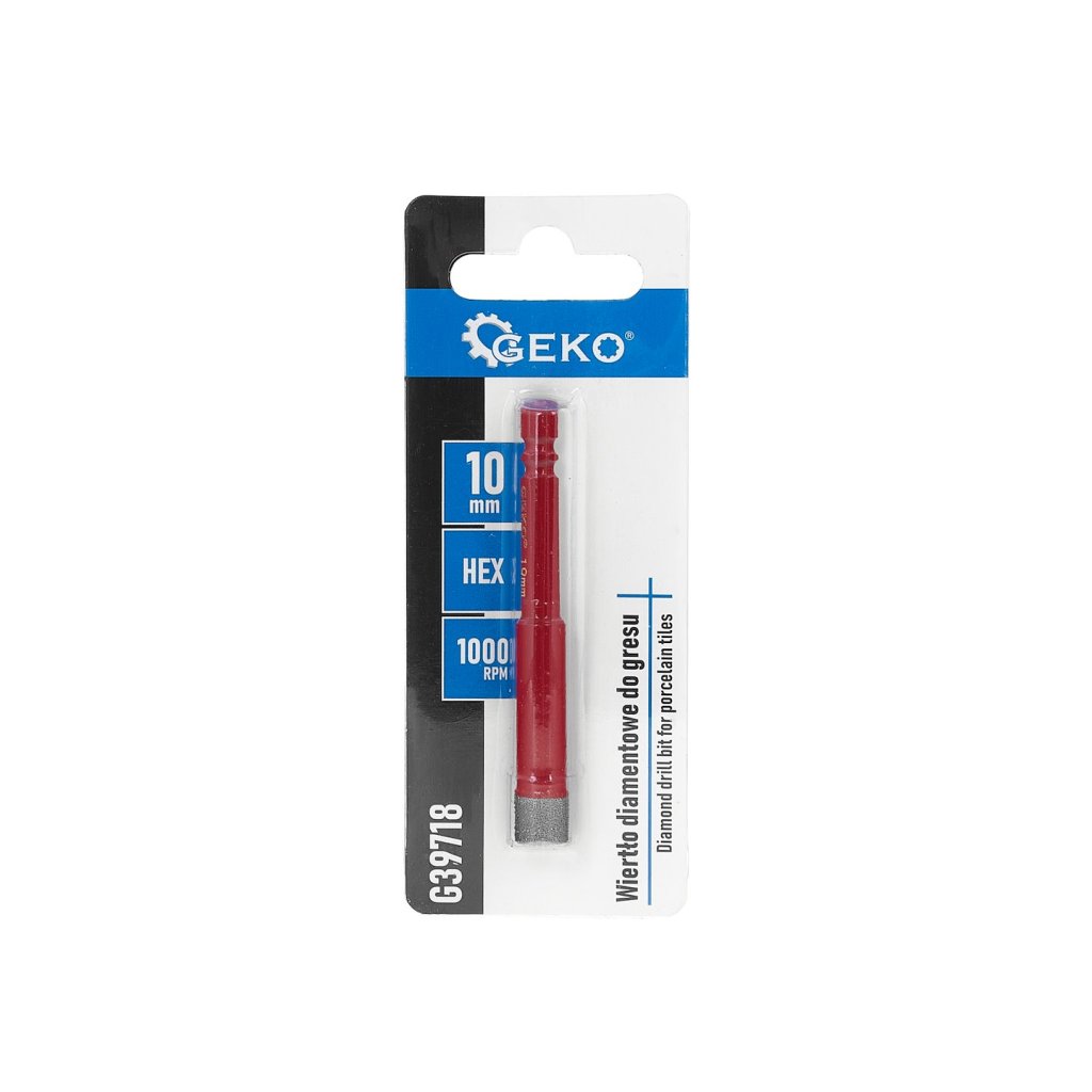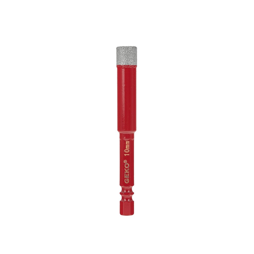 Profesionální diamantový vrták do dlaždic o průměru 10 mm s držákem HEX 1/4”, vytvořený pro přesné a bezpečné vrtání do tvrdých materiálů. Plnění vrtáku speciálním voskem usnadňuje odvod tepla během práce, díky čemuž je možné efektivní suché vrtání bez nutnosti dodatečného chlazení vodou.