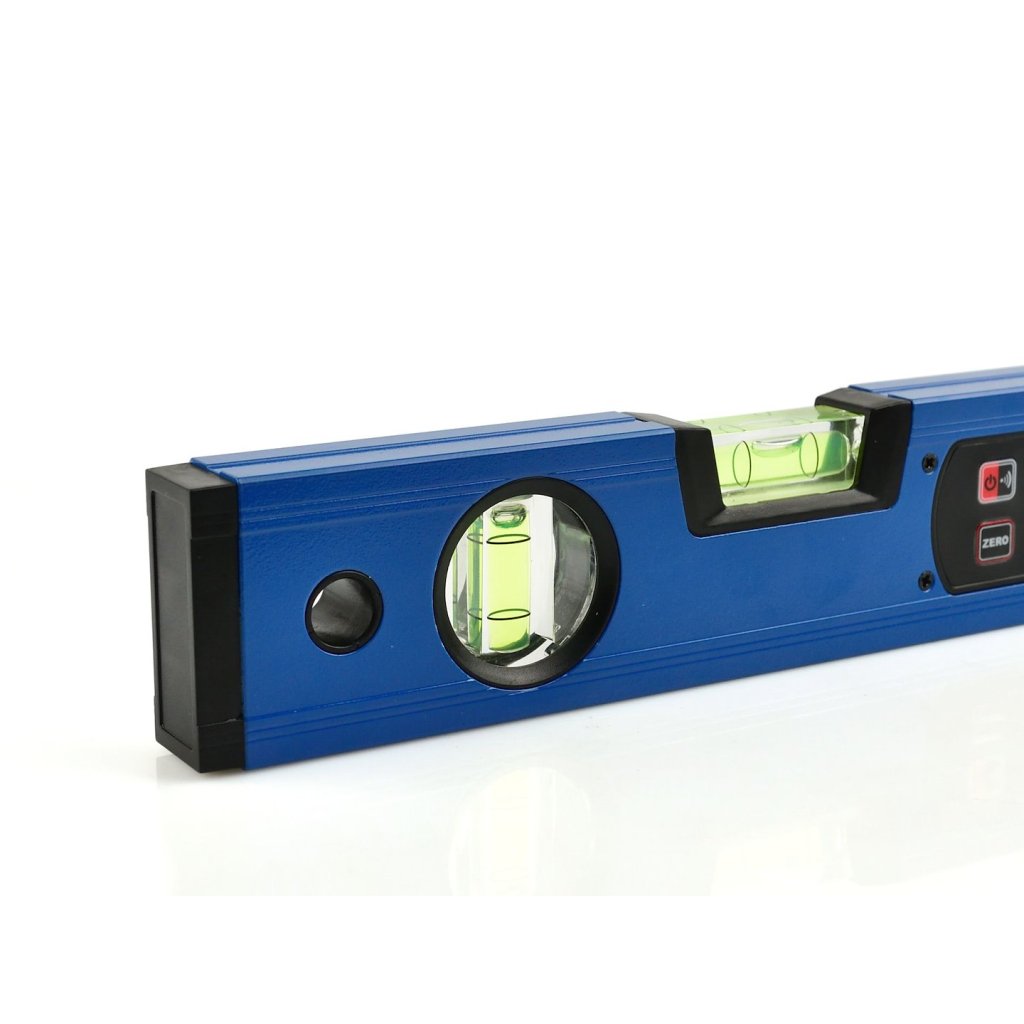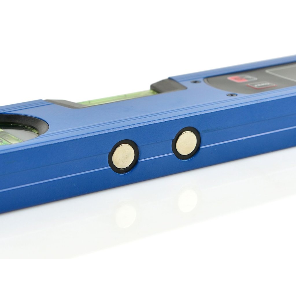 Digitální vodováha o délce 400 mm. Vybavena 2 libelami pro určení svislé a vodorovné polohy a čitelným podsvíceným displejem, povýkoní kterého lze provést přesné měření úhlu sklonu. Tělo vodováhy je vyrobeno z odolného hliníku. Funkce HOLD umožňuje zachovat aktuální měření na displeji. Funkce ZERO umožňuje vynulovat úhloměr v libovolné poloze a provést referenční měření. Nářadí je vybaveno 4 silnými magnety, které jsou velmi užitečné při provádění měření na ocelových prvcích.