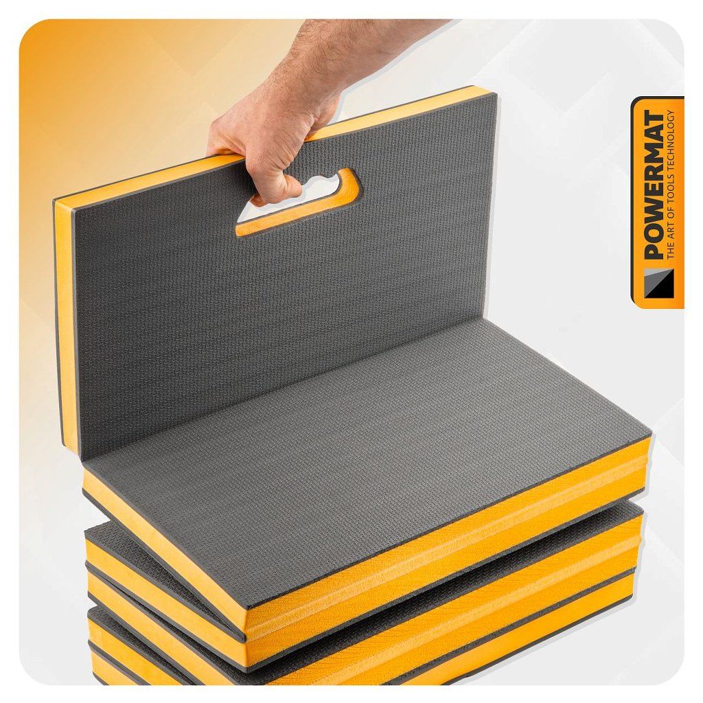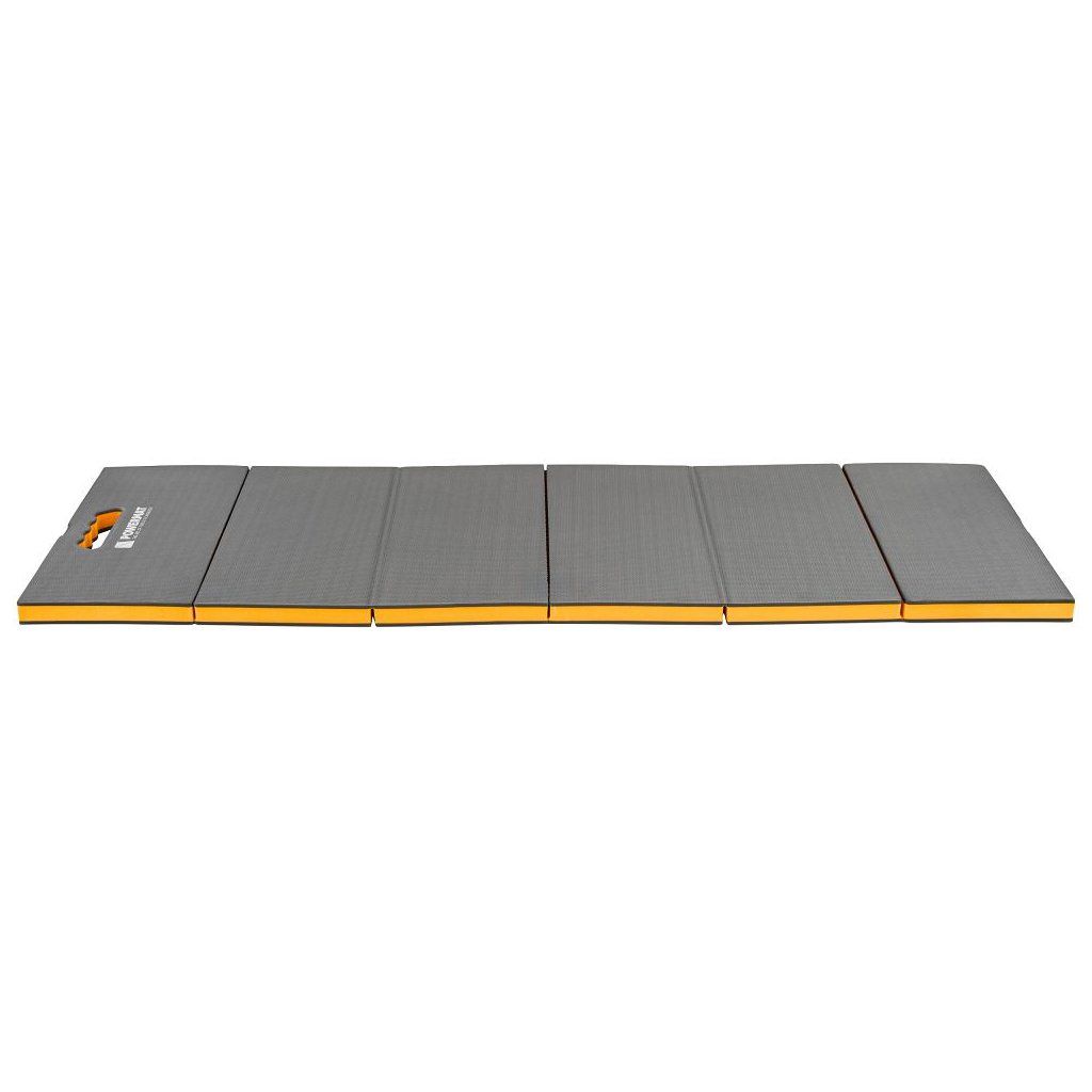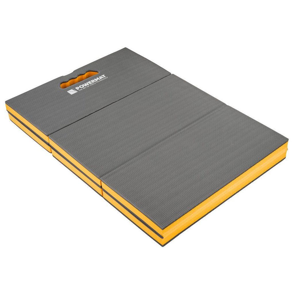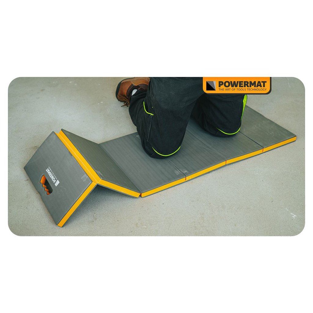 Lehká a odolná dílenská podložka / lehátko Powermat PM-MWR-117T z pěny EVA (30 mm) tlumí tlak při klečení i ležení, izoluje od chladu a díky uzavřené buněčné struktuře nenasákne vodu – snadno ji otřeš hadříkem. 6dílná skládací konstrukce šetří místo při skladování a usnadní transport.