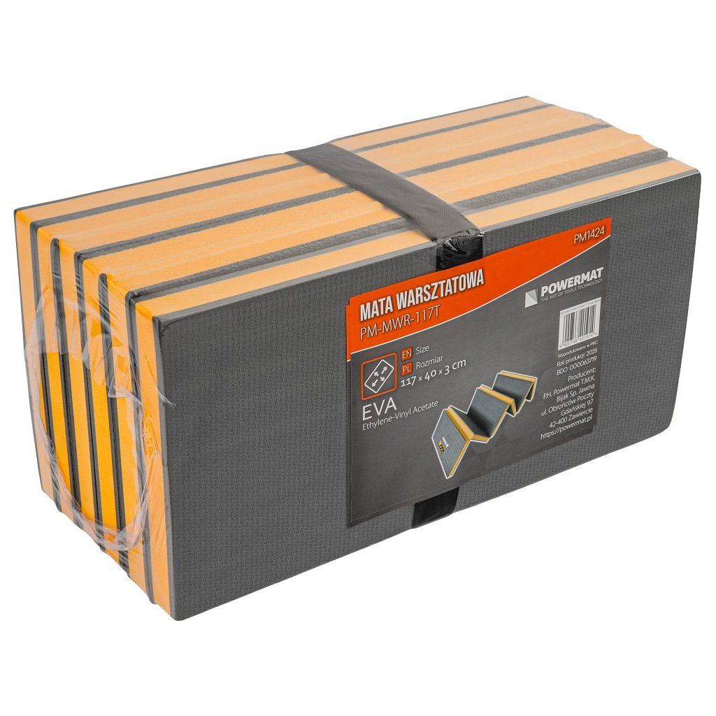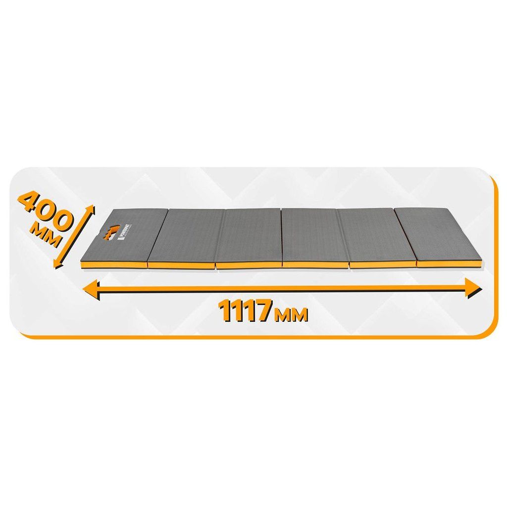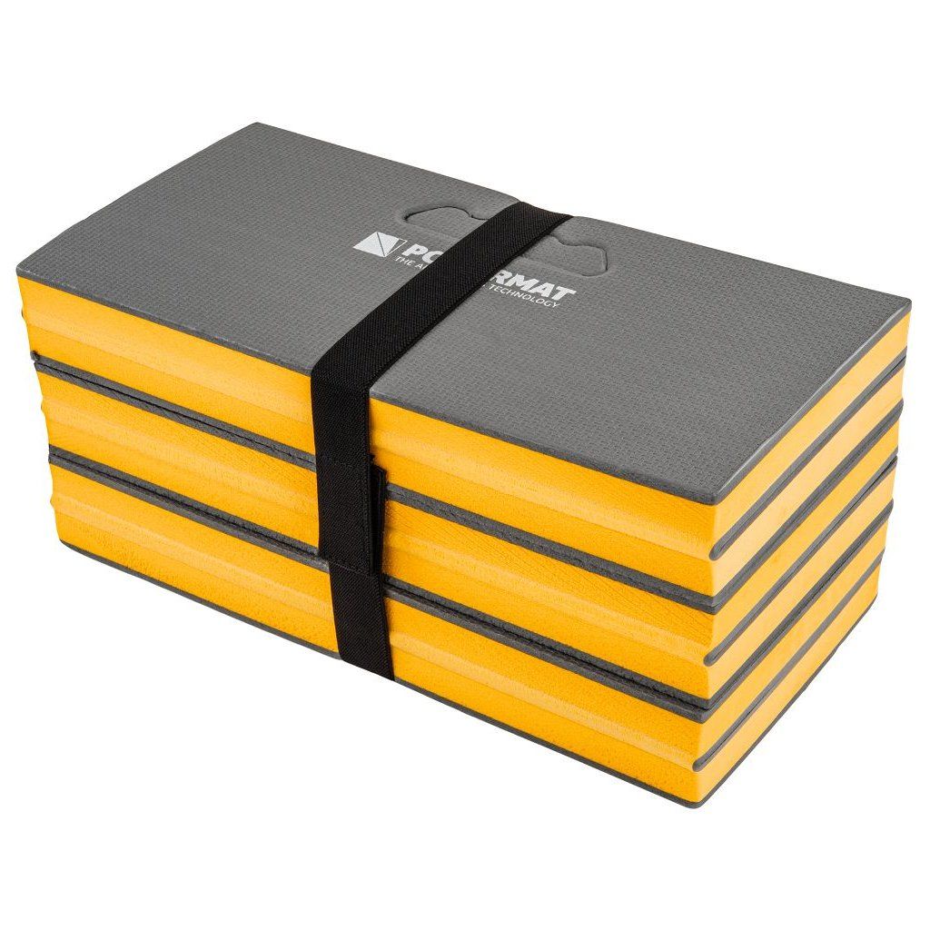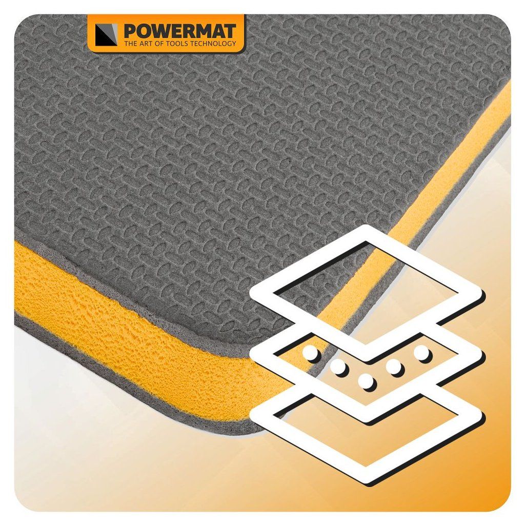 Lehká a odolná dílenská podložka / lehátko Powermat PM-MWR-117T z pěny EVA (30 mm) tlumí tlak při klečení i ležení, izoluje od chladu a díky uzavřené buněčné struktuře nenasákne vodu – snadno ji otřeš hadříkem. 6dílná skládací konstrukce šetří místo při skladování a usnadní transport.