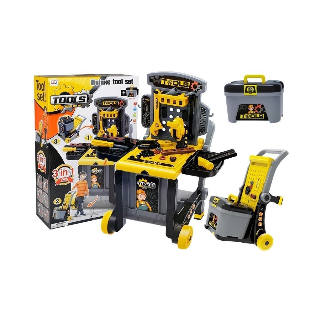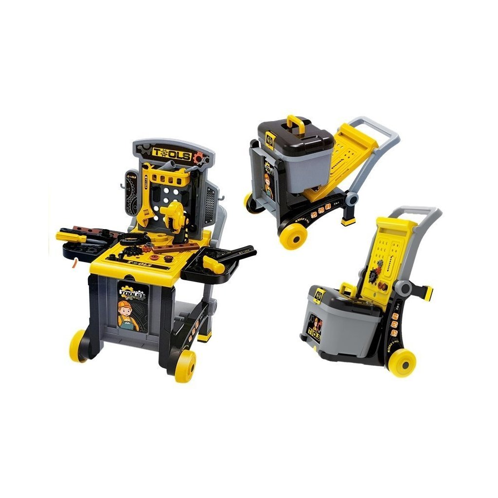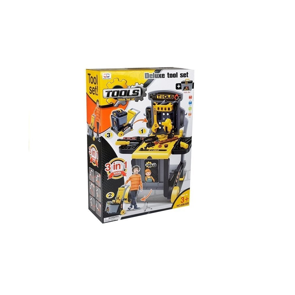 Velká sada pro kutily — stolek Sada pro kutily se skládá z prvků, které potěší každého chlapce Možnost napodobovat svého tatínka, domácího kutilského mistra, jistě způsobí, že se několik let staré dítě bude cítit dospělejší a také zodpovědnější
