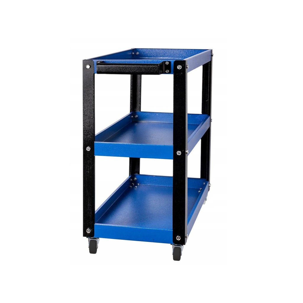 Dílenský vozík, který pomáhá udržovat pořádek na pracovišti. Vozík má ergonomický přišroubovaný držák, který usnadňuje přepravu.