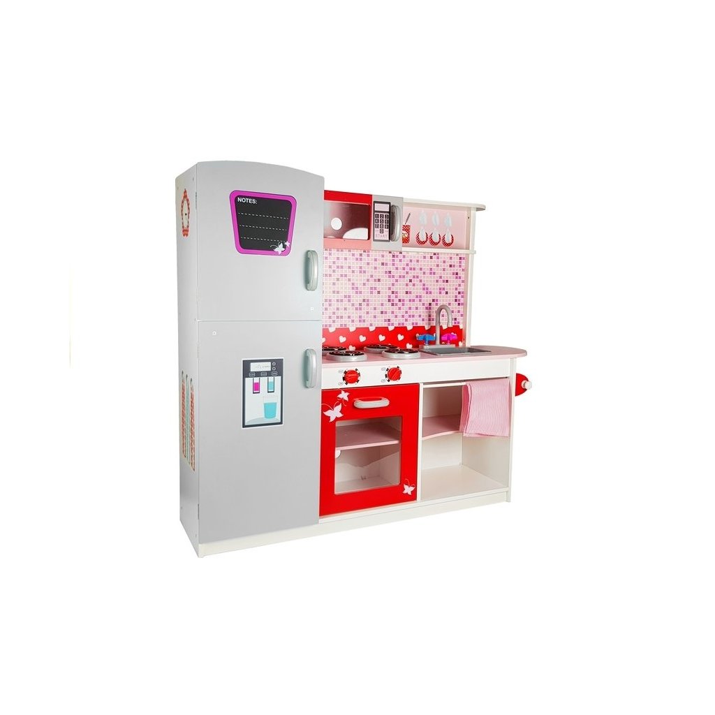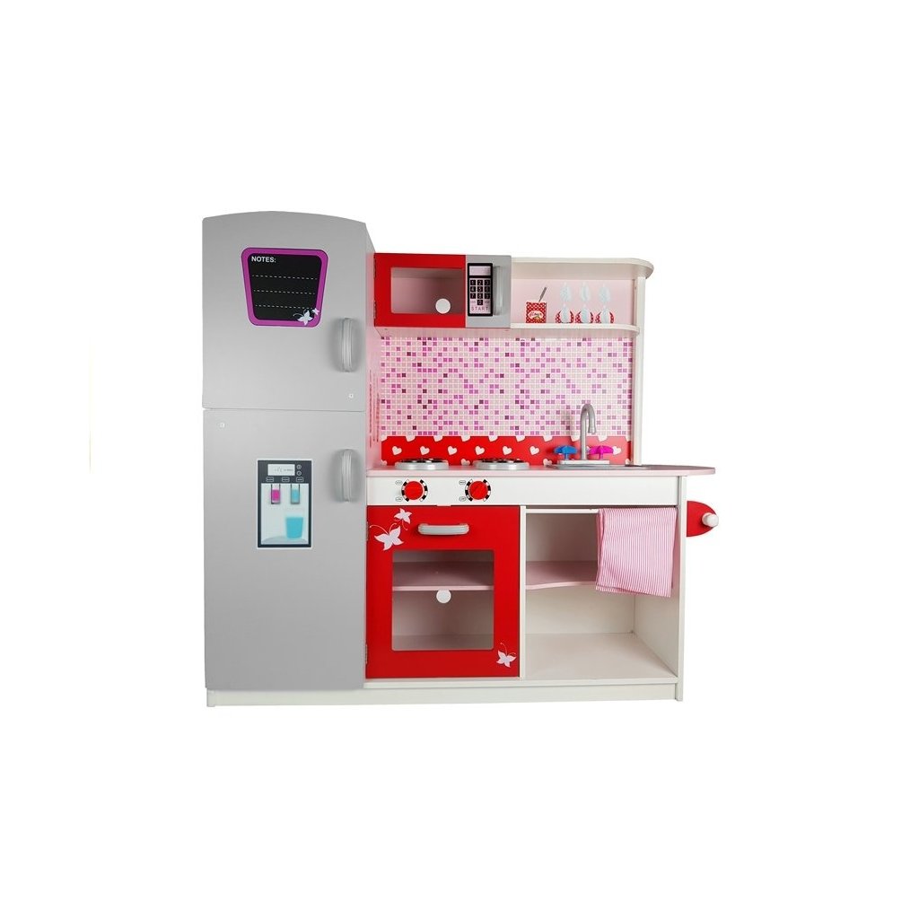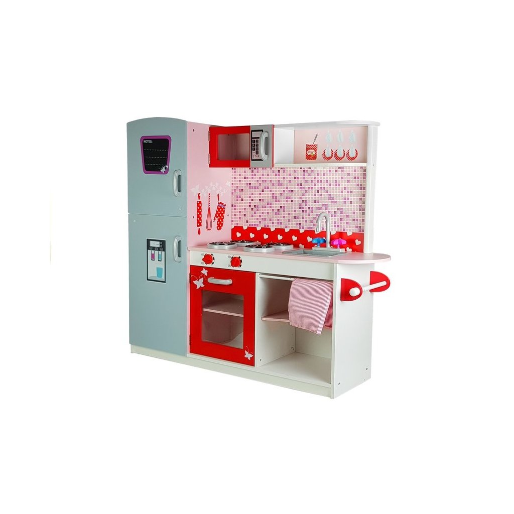 - Dřevěná kuchyňka s mikrovlnnou troubou, lednicí a plynovým sporákem je jedinečným místem pro hraní a učení, vytvořená s ohledem na malé kuchaře