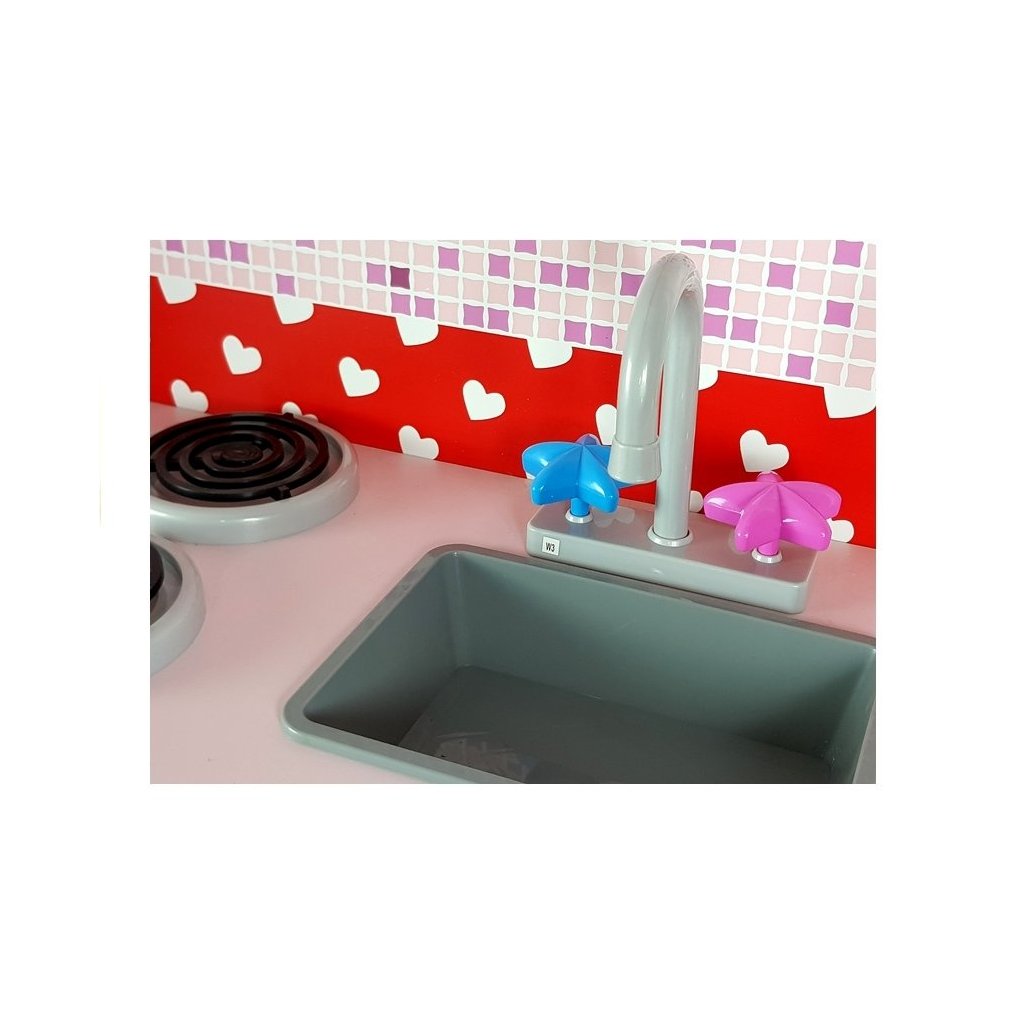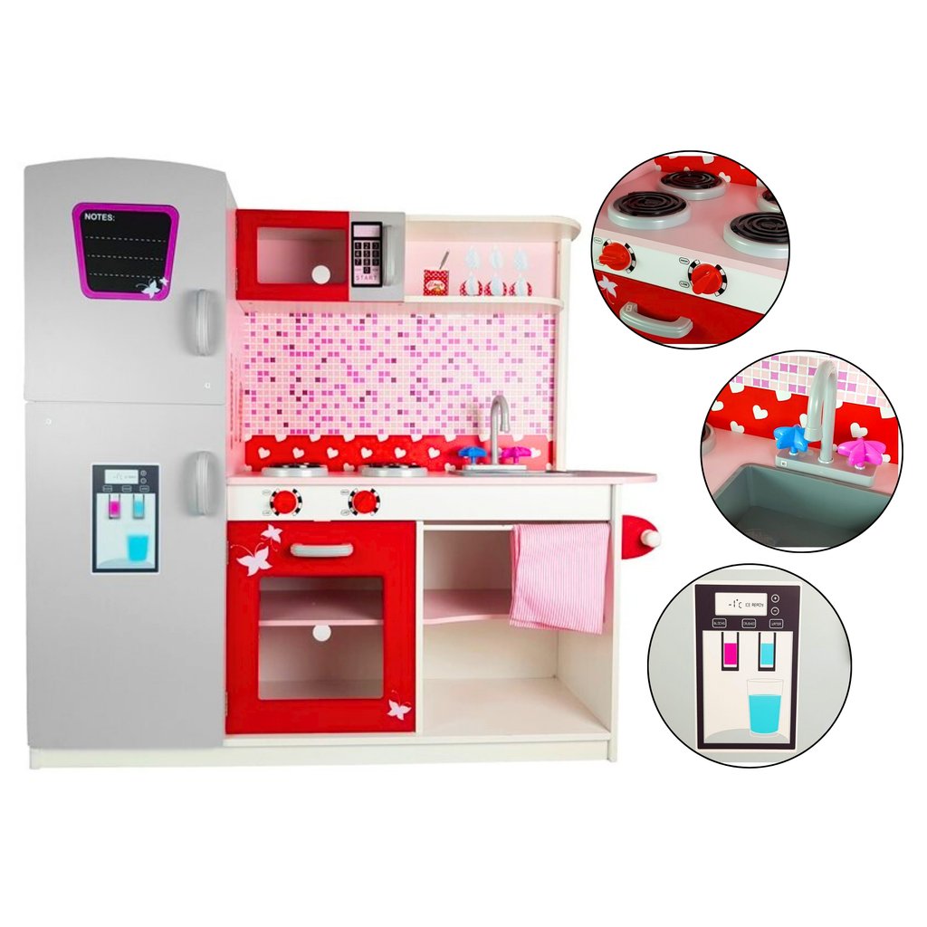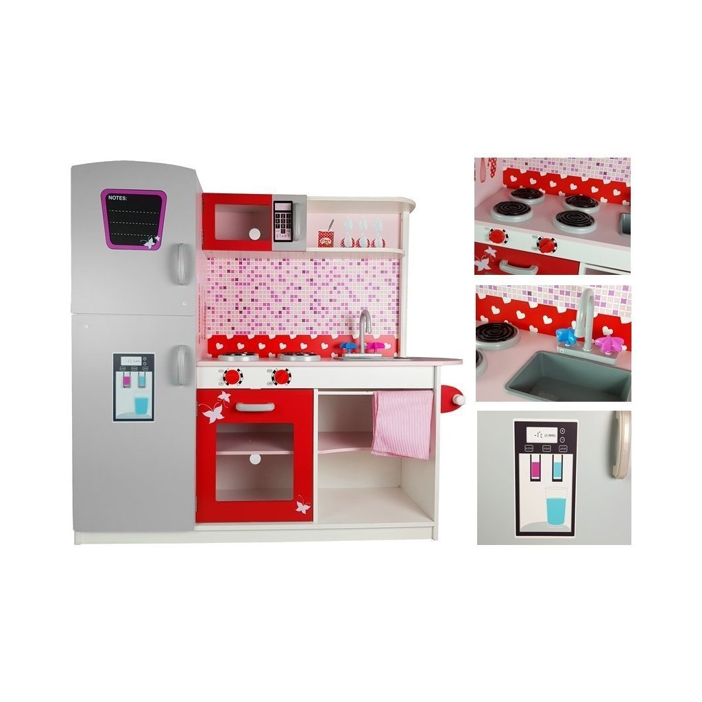 - Dřevěná kuchyňka s mikrovlnnou troubou, lednicí a plynovým sporákem je jedinečným místem pro hraní a učení, vytvořená s ohledem na malé kuchaře