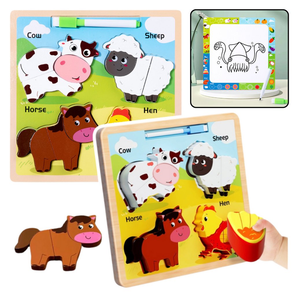 - Dřevěná vzdělávací skládačka Domácí zvířata s Tabulí na kreslení je skvělý způsob, jak spojit učení se zábavou