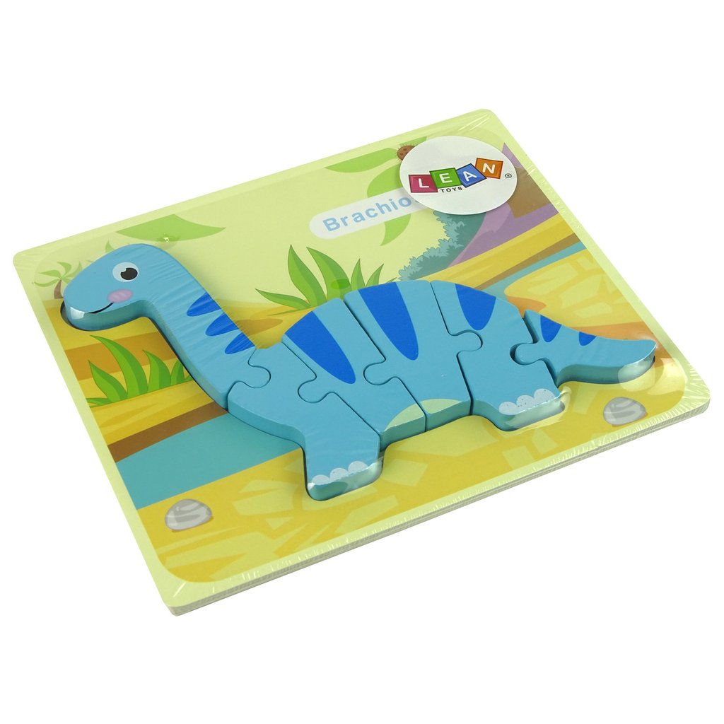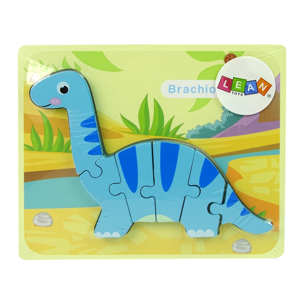 Dřevěné puzzle dinosaurus Brachiosaurus modrý Puzzle, které učí, jsou ideální kombinací.
