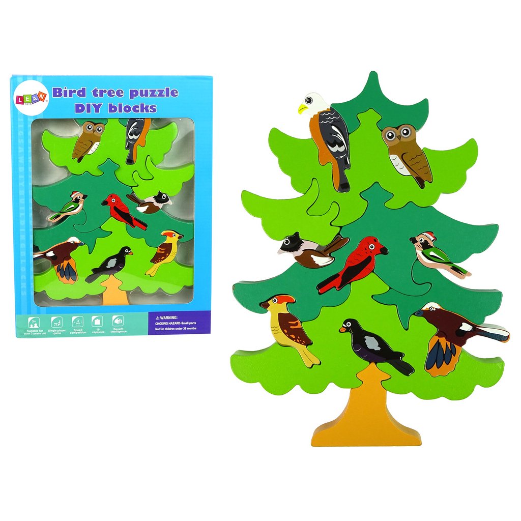 - Dřevěné stromy Ptáci DIY dřevěné kostky puzzle Strom ve formě puzzle, skvělá zábava, podporující vývoj vašeho dítěte