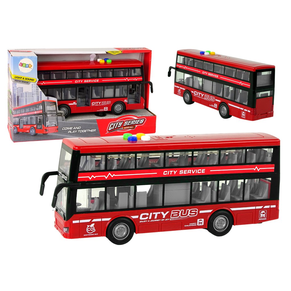 Dvoupodlažní Autobus na Baterie Světla Zvuky Pohon Třením Červený 1:16