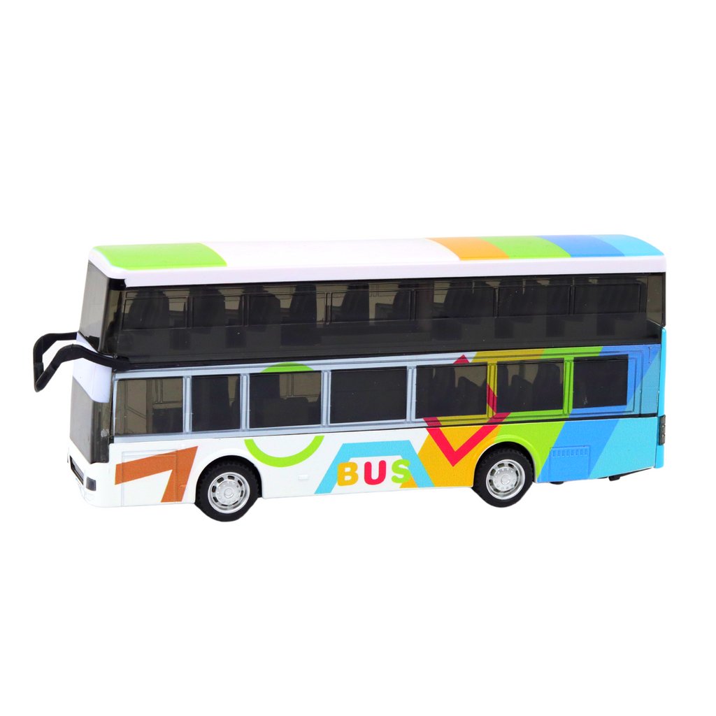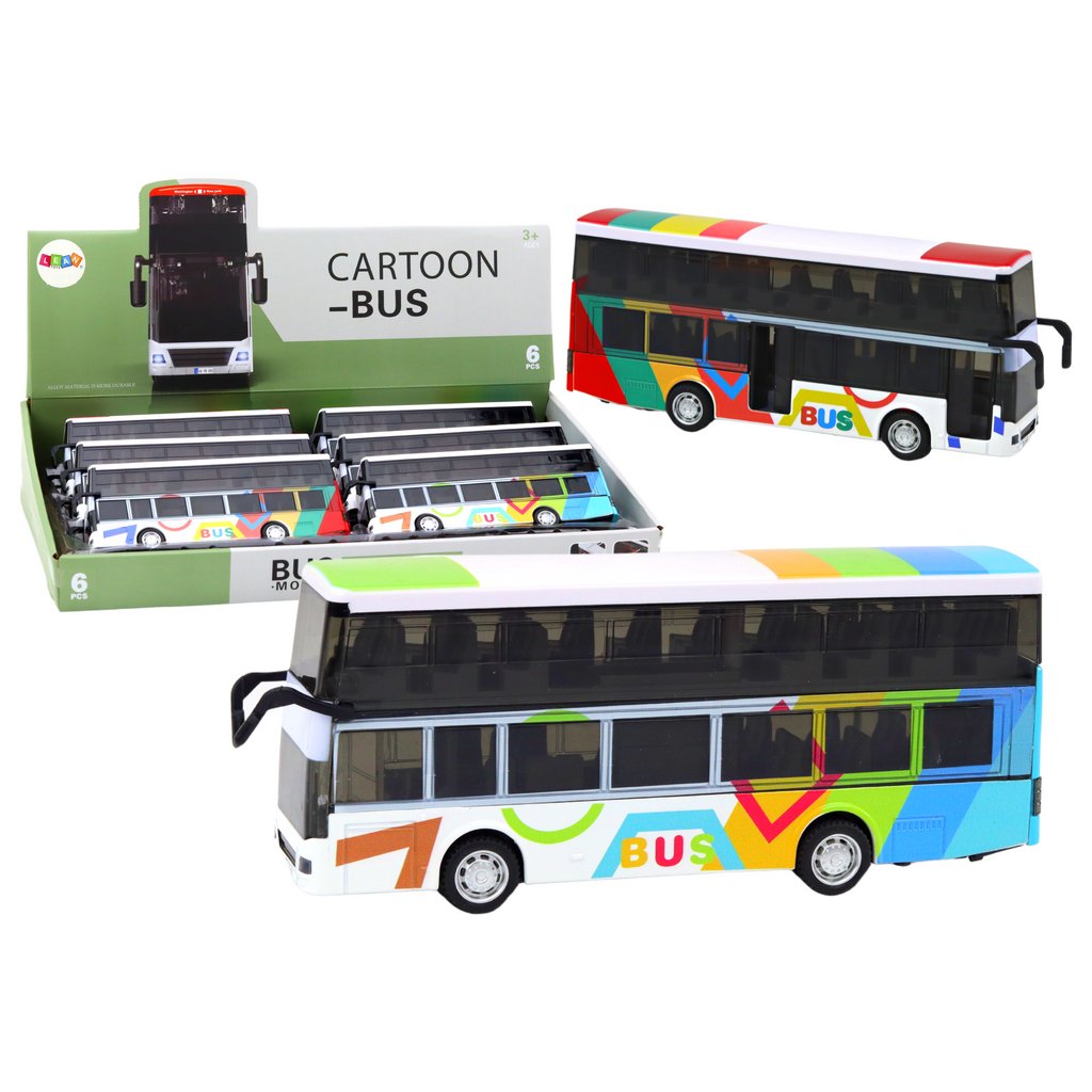 - Dvoupatrový autobus s pohonem, kovový, barevný, světla, zvuky ⭐ Dvoupatrový autobus s frikčním pohonem je barevná kovová hračka, která dětem zaručí nezapomenutelnou zábavu