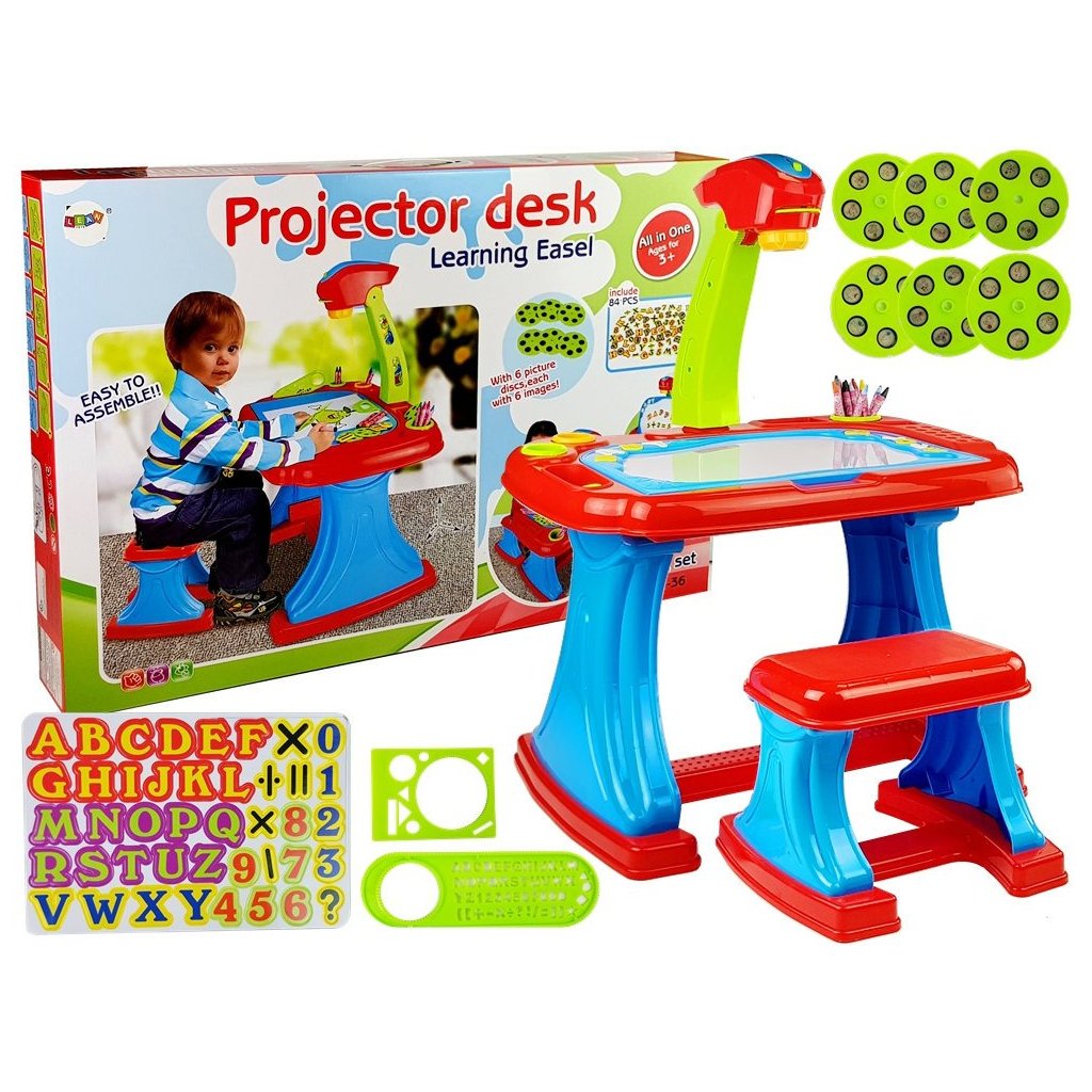 - Objevte svět kreativity a vzdělávání s naším edukačním stolkem s projektorem, židličkou, pastelkami, magnety, písmenky a čísly!