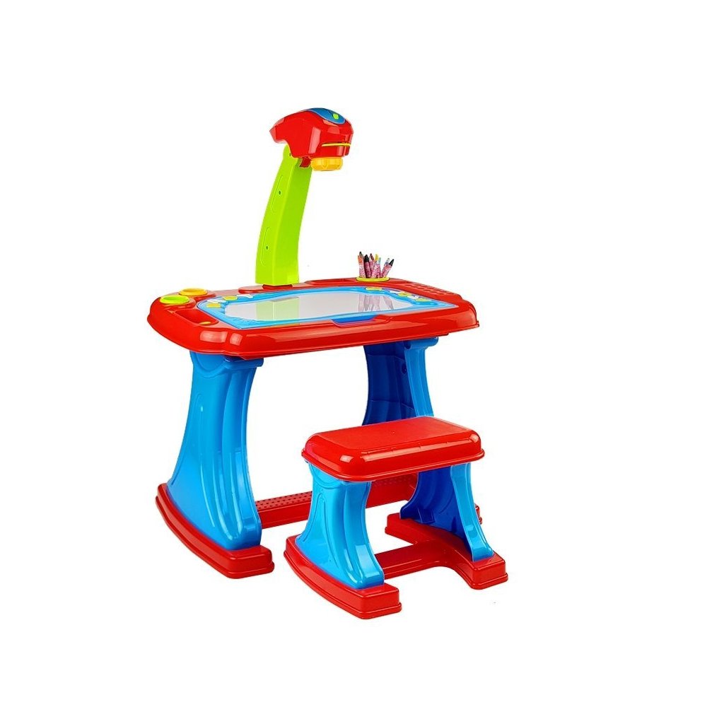 Objevte svět kreativity a vzdělávání s naším edukačním stolkem s projektorem, židličkou, pastelkami, magnety, písmenky a čísly!