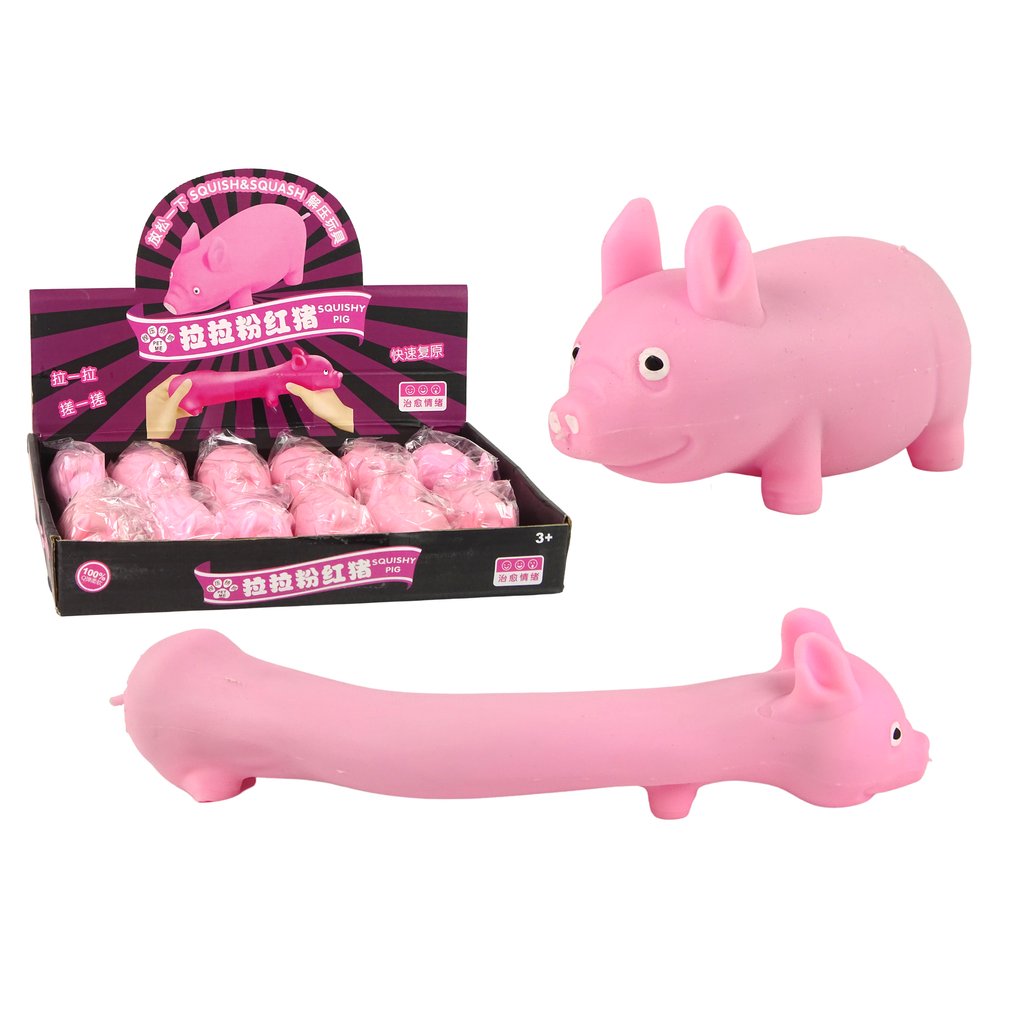 Prasátko vypadá jako skutečné, má růžovou barvu a roztomilý ocásek. Lze ho natahovat, mačkat a deformovat.