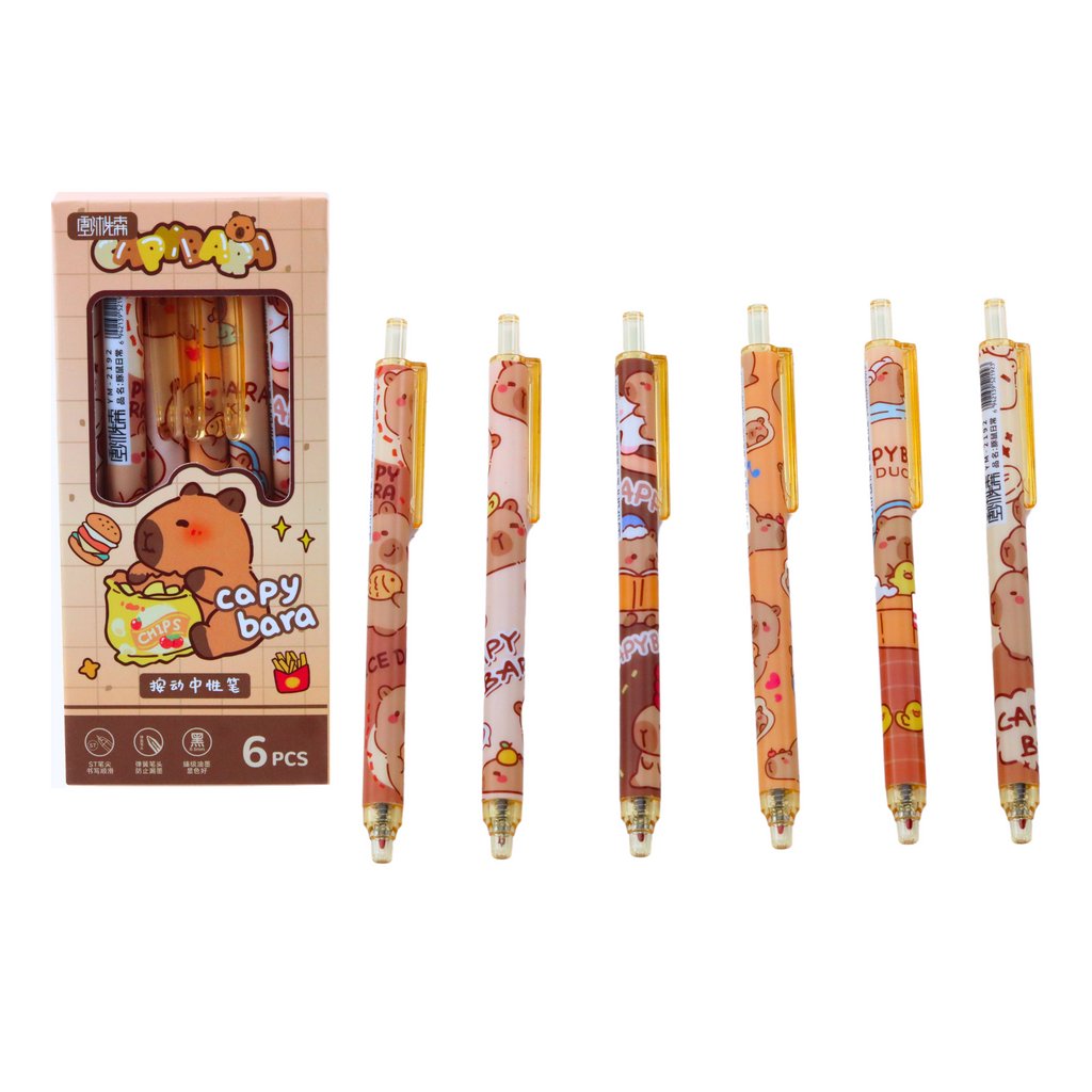 Elegantní Psací Sada Kapibara - 6 Modrých Kuličkových Pera
