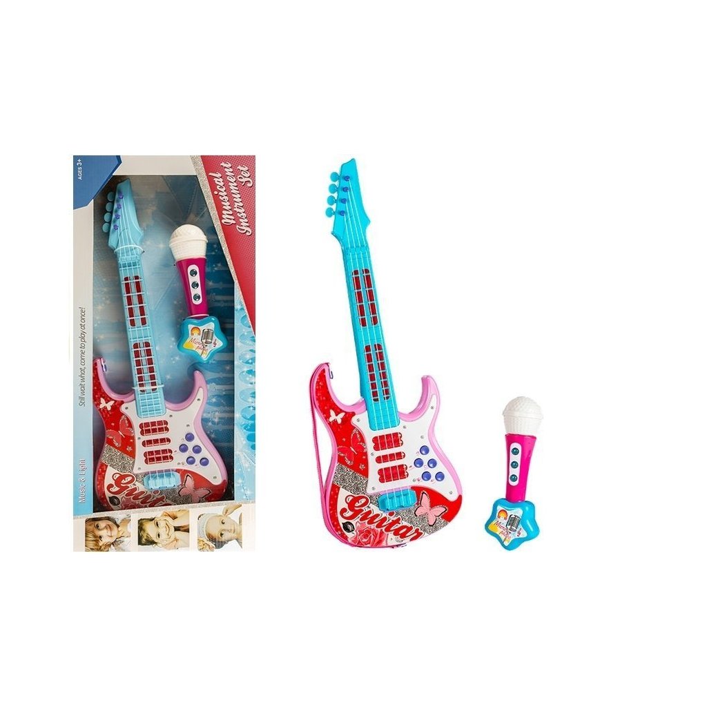 - Elektrická kytara Mikrofon Struny Hračka Růžová V našem sortimentu najdete něco pro každé dítě!