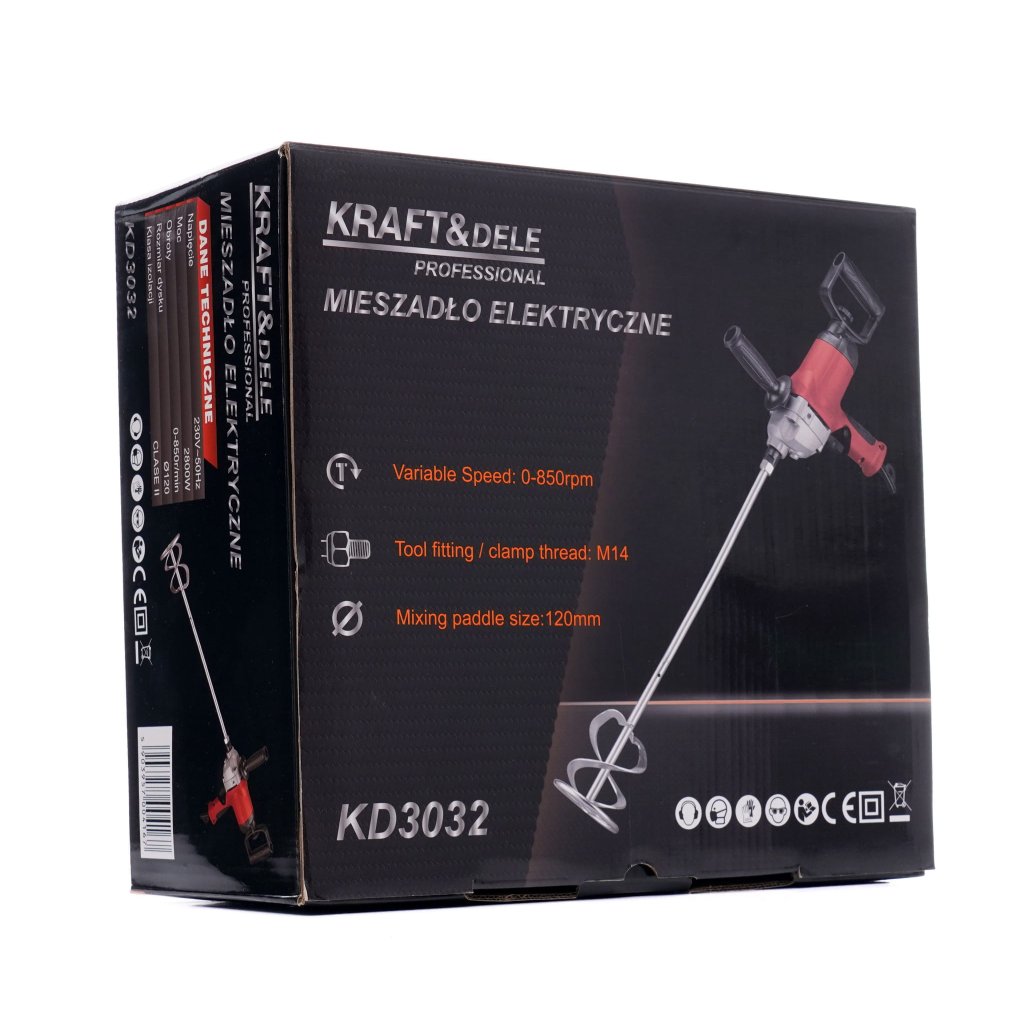 - Obsah balení zahrnuje vše, co potřebujete: míchadlo KD3032, míchadlo s upevněním M14, nástroj pro údržbu a uživatelskou příručku
