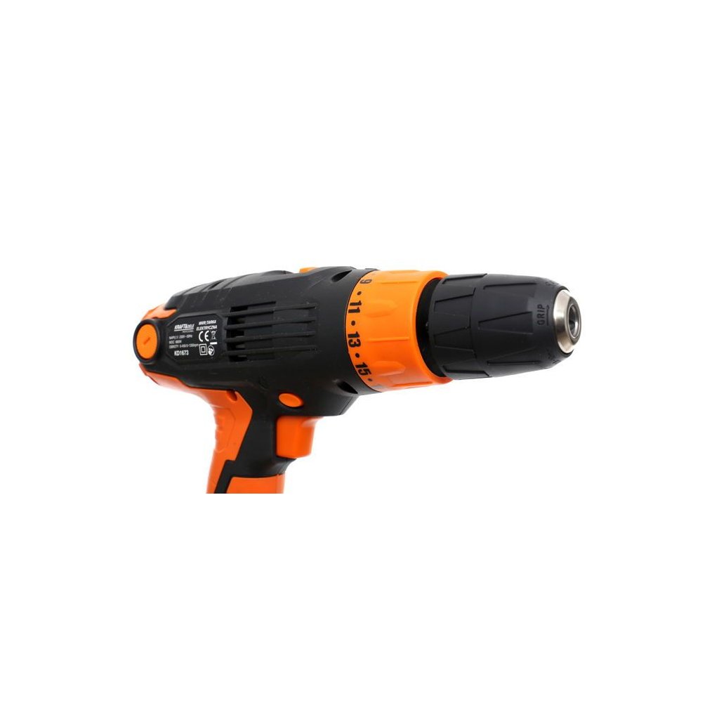 - TECHNICZNE PRODUKTU Marka: KRAFT&DELE Model: KD1673 Typ urządzenia: wkrętarko wiertarka sieciowa Zasilanie: 230V / 50Hz Moc: 880 W Ilość biegów: 2 Liczba obrotów: 0-450 RPM(I), 0-1350 RPM(II) Maks. moment obrotowy: 18/30 Nm Regulacja momentu obrotowego: 17+1 Zakres uchwytu: 10 mm Regulacja obrotów: lewo/prawo Waga urządzenia: 1,5 kg