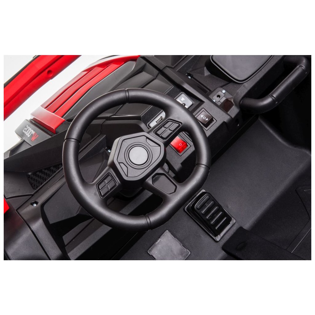 - Výkonný motor: Vozidlo je vybaveno čtyřmi motory s výkonem 200W, které zajišťují plynulou jízdu.