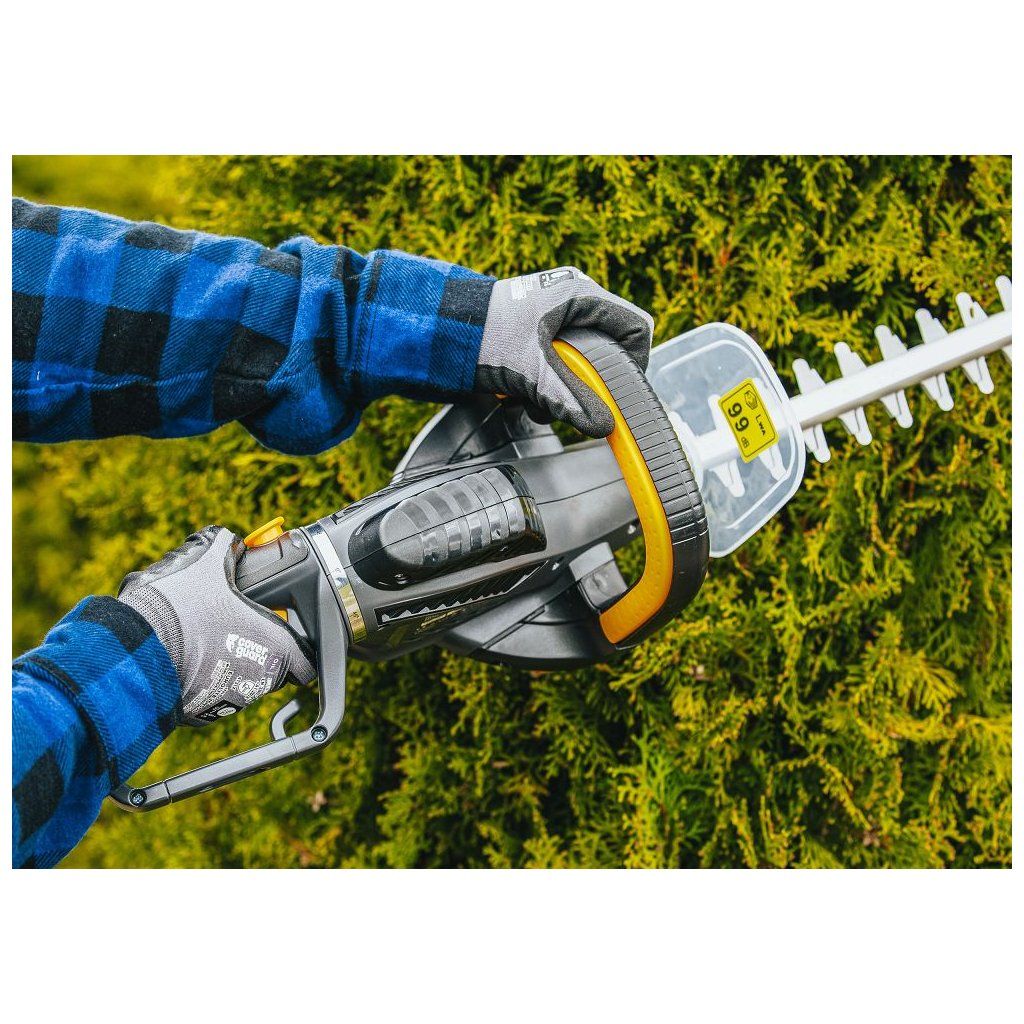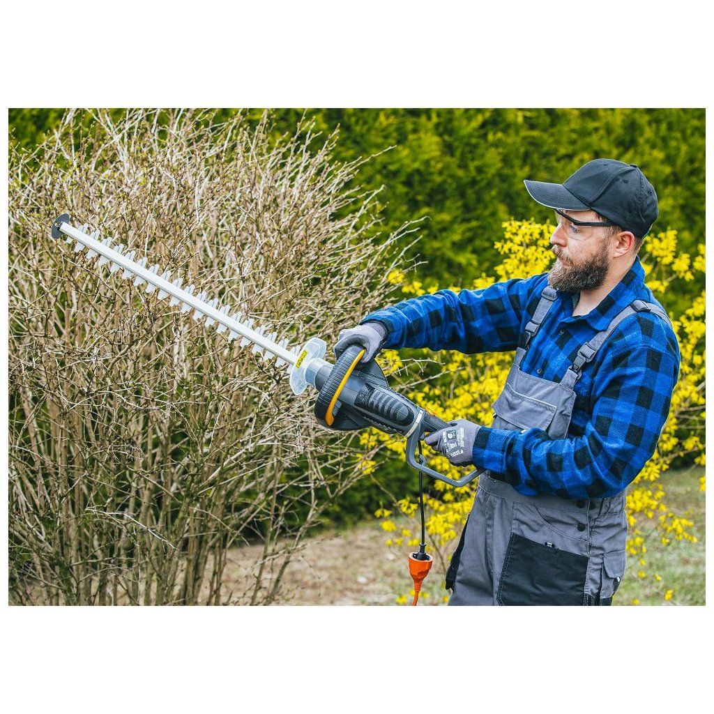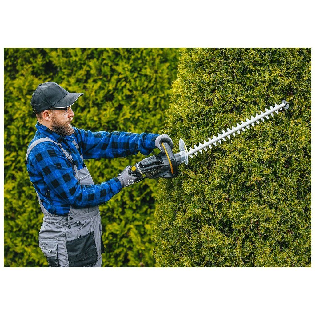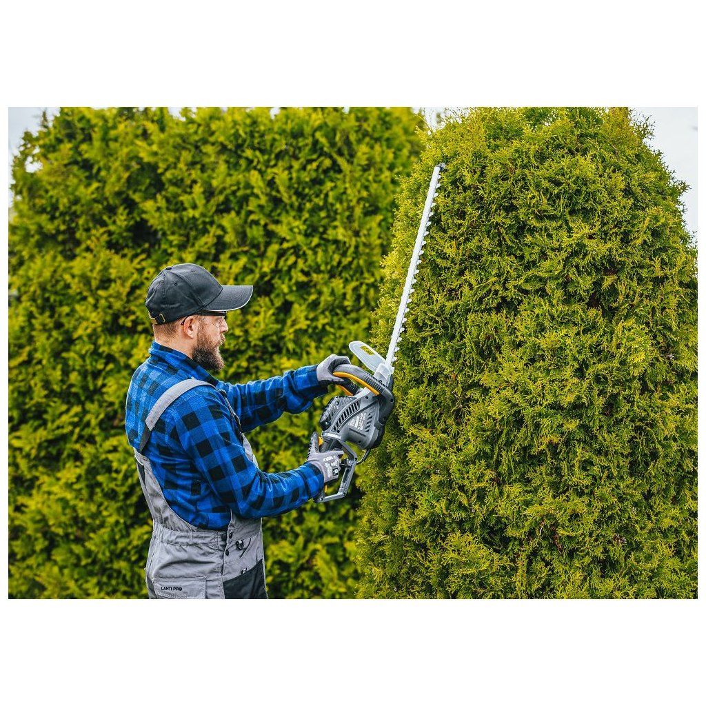 Tato konstrukce zajišťuje stabilní a pohodlné používání při úpravě živých plotů i tvarování keřů.