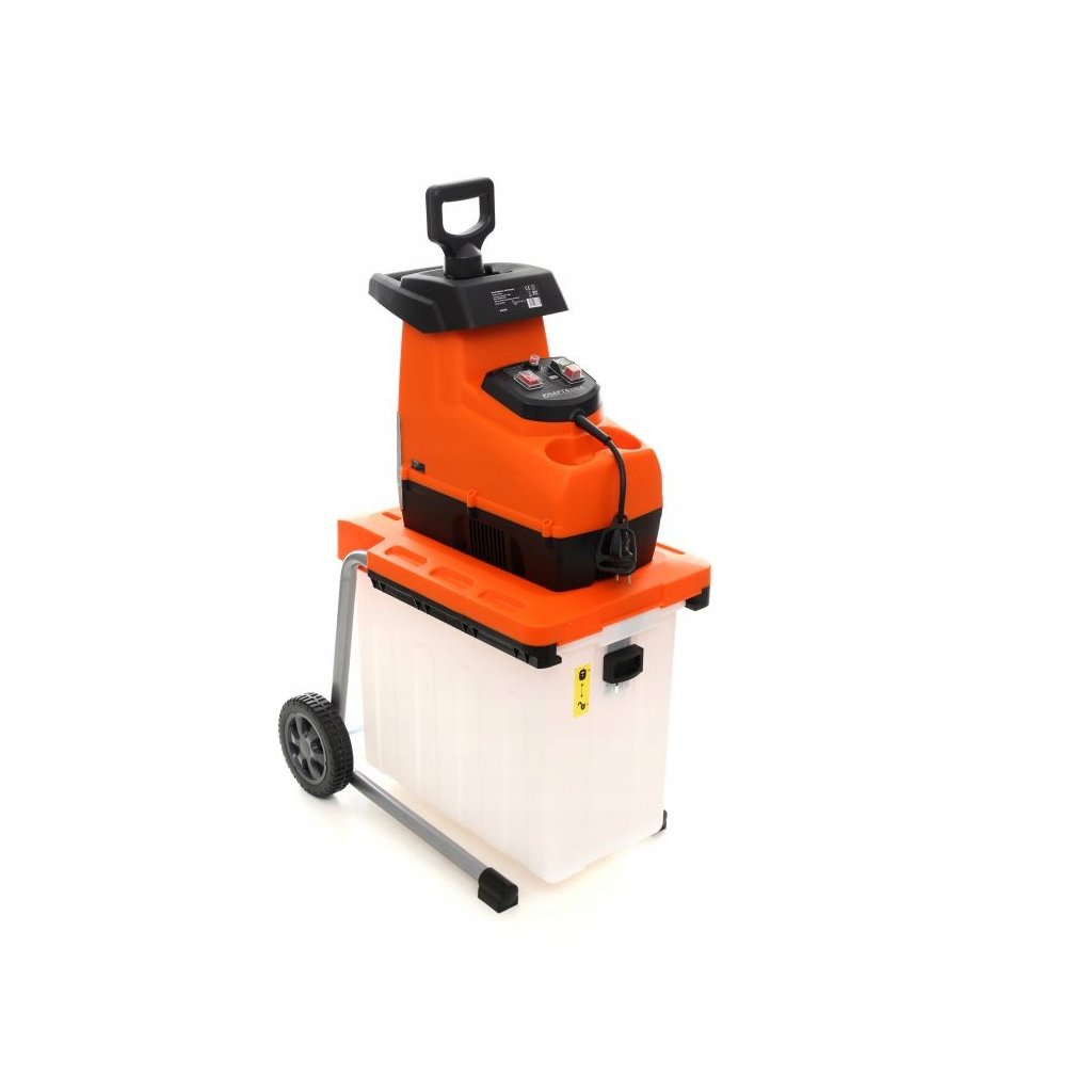 Použití bezkomutátorového motoru snižuje množství proudu, který generuje teplo - nárůst teploty na krytu je snížen i při náročných zahradních aplikacích. Navíc je prakticky bezporuchový, mechanicky se neopotřebovává, má jednodušší konstrukci a vysokou účinnost. Elektrický drtič se vyznačuje mnohem tišším chodem oproti spalovacím strojům a menší hmotností, díky čemuž je mnohem mobilnější. Je to zařízení šetrné k životnímu prostředí a... soused. Velkou výhodou zařízení je způsob spouštění - stačí zavést napájecí kabel a stisknout tlačítko "START" a váš drtič se s nadšením pustí do práce na zahradě! Řezání větví patří k základní péči, kterou na našich zahradách provádíme. Po skončení práce však většinou nastává problém, co s ořezanými větvemi. Na pomoc přichází námi nabízený drtič větví Kraft & Dele KD5202. Toto řešení je nejen velmi ekologické, ale také velmi pohodlné. Absolutní pro ratolest a zároveň zcela bezpečné pro uživatele. Nabízený drtič větví vám snadno umožní drtit tuhé výhonky trvalek, větvičky z živých plotů či keřů a dokonce i větve o průměru až 44 mm Pokud je zpracovávaný materiál jakkoli ucpaný, nejsnáze se ho zbavíte pomocí „zpátečky“. Stačí stisknout tlačítko na ovládacím panelu a frézy se začnou otáčet v opačném směru, čímž se zaseknutý materiál snadno odstraní. Odolná kolečka a kovový rám pro snadnou přepravu a přemisťování přístroje mezi pracovišti. Zařízení má odolné pouzdro, které chrání vnitřní komponenty a zaručuje vysokou odolnost proti mechanickému poškození. Nízká hmotnost stroje pouhých 20,8 kg zaručuje vynikající manévrovatelnost a snadné použití. Toto řešení si jistě pochválí ženy, které se nerady, pokud vůbec, pustily do práce s těžkým spalovacím motorem. Velký integrovaný 60l koš z odolného plastu je nejen odolný proti deformaci, ale je také ideální pro přepravu drceného materiálu.
