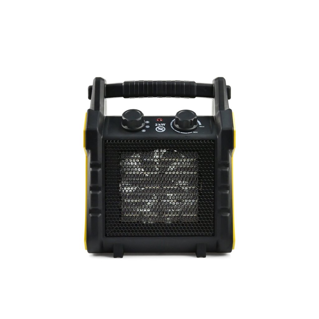 Elektrický ohřívač o výkonu 2 kW. Je vybaven keramickým topným tělesem, které v kombinaci se silným proudem vzduchu zajišťuje rychlé vytápění prostor, jako jsou obchody, dílny, garáže, domácnosti atd. Má dva přepínače, které umožňují nastavit výkon ohřívače a požadovanou teplotu, po jejímž dosažení zařízení přestane topit. Jakmile teplota okolí klesne pod nastavenou teplotu, zařízení se znovu zapne. Izolovaná rukojeť umožňuje bezpečné přenášení ohřívače i krátce po jeho vypnutí.