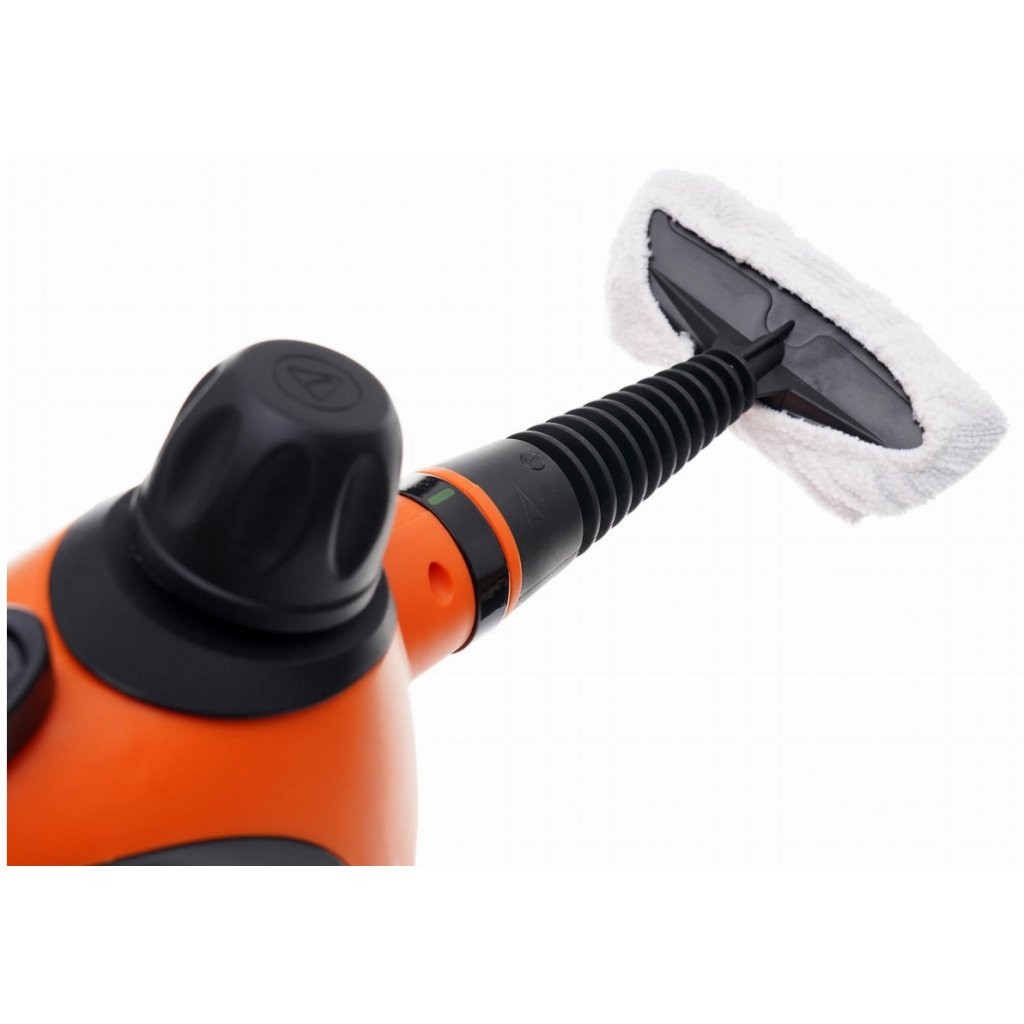 Praktický ruční parní čistič pro rychlé a hygienické čištění bez chemie. S výkonem 1100 W a teplotou páry až 135 °C snadno odstraní nečistoty, mastnotu, bakterie i plísně. Vytváří pracovní tlak 2,5–3,5 bar, je připraven během několika minut a díky nádržce 350 ml zvládne více úklidu na jedno naplnění. Vhodný na podlahy, okna, spáry, obklady, textilie, kuchyňské a koupelnové plochy i detaily interiéru auta.