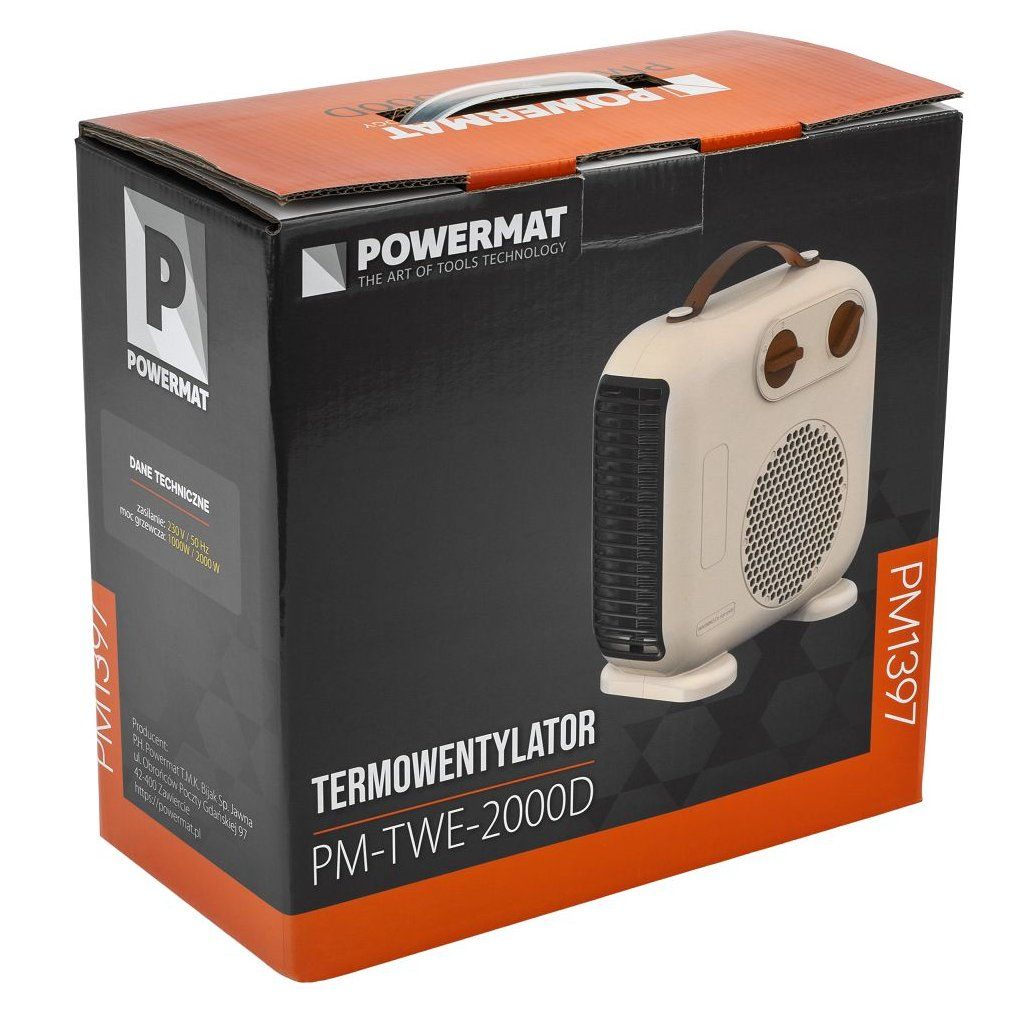 Elektrický teplovzdušný ventilátor / ohřívač POWERMAT PM-TWE-2000D – 2000 W dvoustupňový ventilátor s termostatem