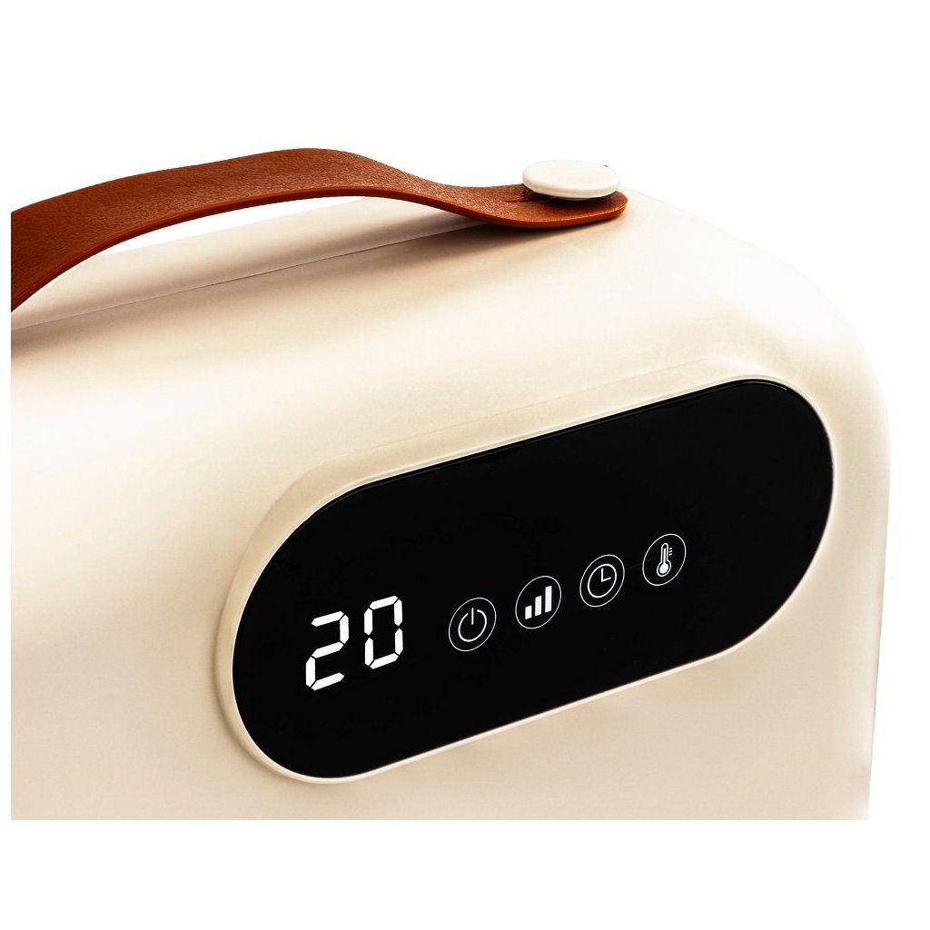 Součástí ovládání je také programovatelný časovač 1–24 hodin, který umožňuje naplánovat automatické vypnutí zařízení – ideální pro večerní vytápění nebo během spánku.