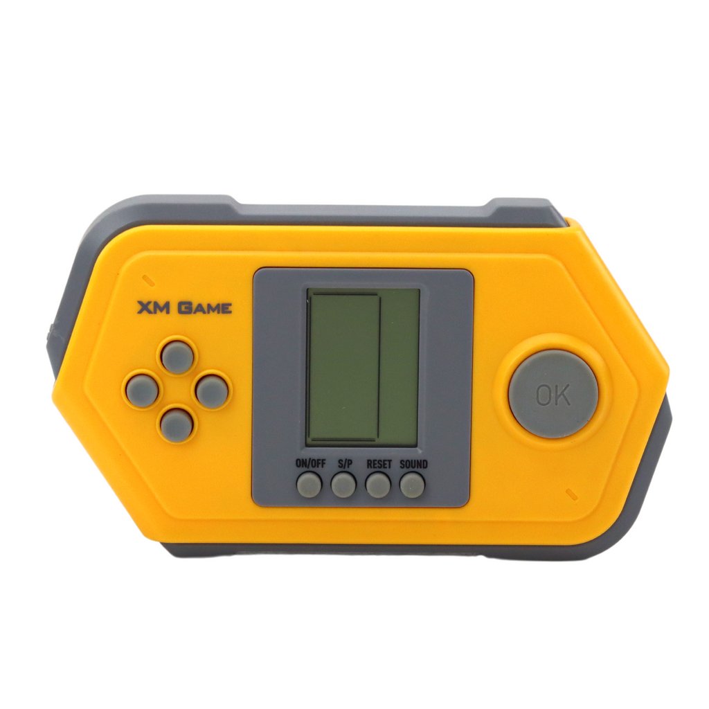 - Žlutá Elektronická hra Tetris Brick Game je klasická hra, jejímž cílem je umožnit hráči skládat kostky různých tvarů na hrací ploše tak, aby zaplnil celou řadu