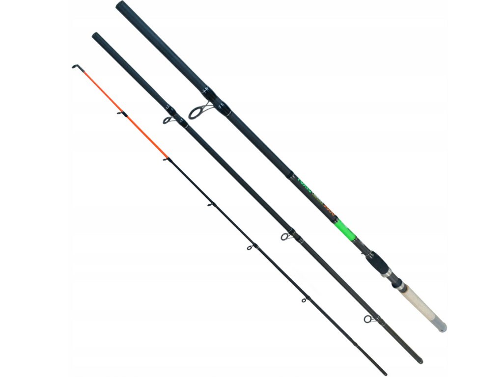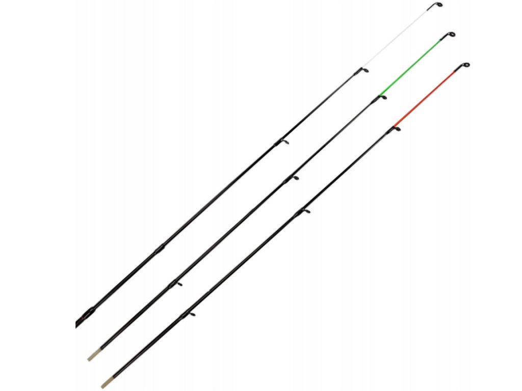 - Na řeky použijte tvrdší špičku; u těžších krmítek respektujte vrhací zátěž 80–180 g.