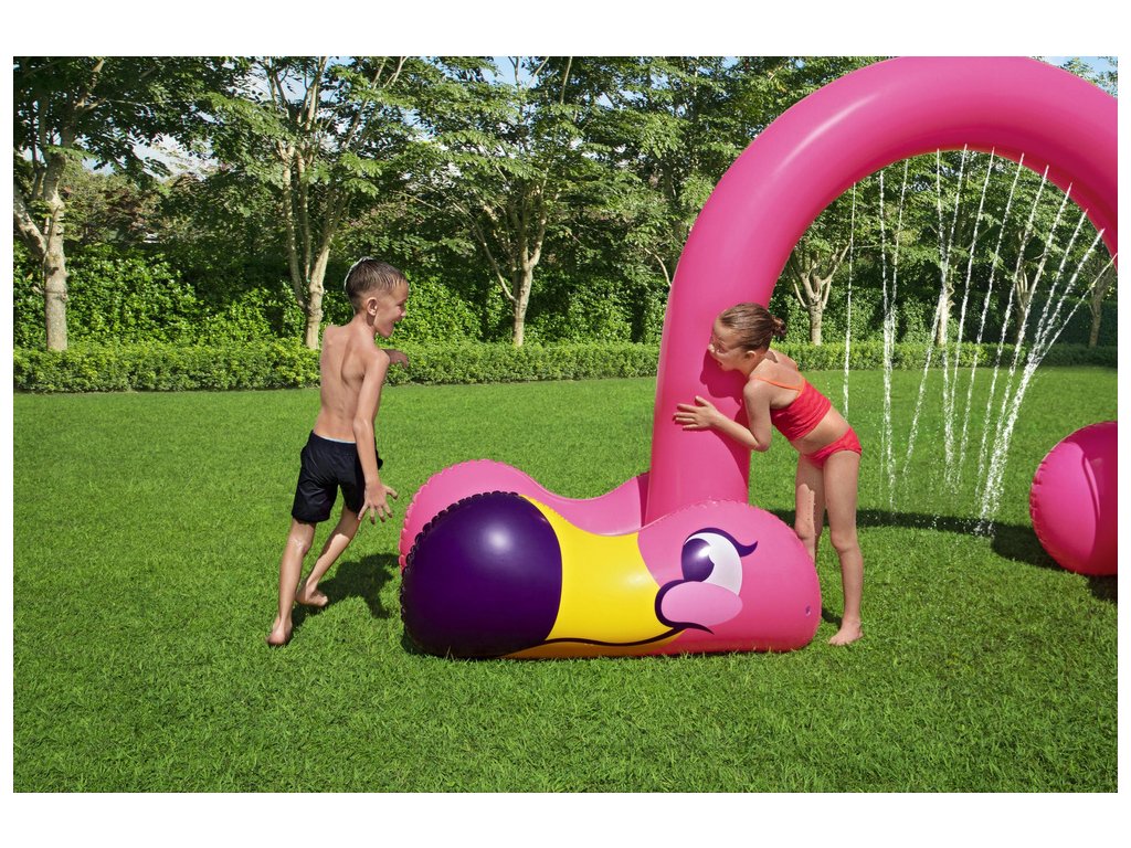 Fontána Voda Plameňák Bestway 52382 je dokonalý způsob, jak dodat vaší zahradě zábavu a vzrušení. Tento velký nafukovací rám se stylovým motivem plameňáka a kreativními funkcemi umožní vašim dětem rozvinout svou představivost během venkovních aktivit a her. Zapomeňte na nudné rozprašovače – sledujte, jak se dětská fantazie rozpíná, když běhají pod obrovským plameňákem, který je kropí prostřednictvím vnitřních zábavných rozprašovačů! Flamingo dosahuje výšky 1,93 m, takže je ideální i pro dospělé. Díky základně na vodu, která posiluje stabilitu, zůstane plameňák pevně stát i za větrných dnů a poskytne příjemné chlazení. Vyroben pro party, setkání a letní dny, toto zařízení pomůže dětem tvořit vzpomínky na celý život. Nafukovací vodní fontánu lze jednoduše nafouknout, vyfouknout a uskladnit.