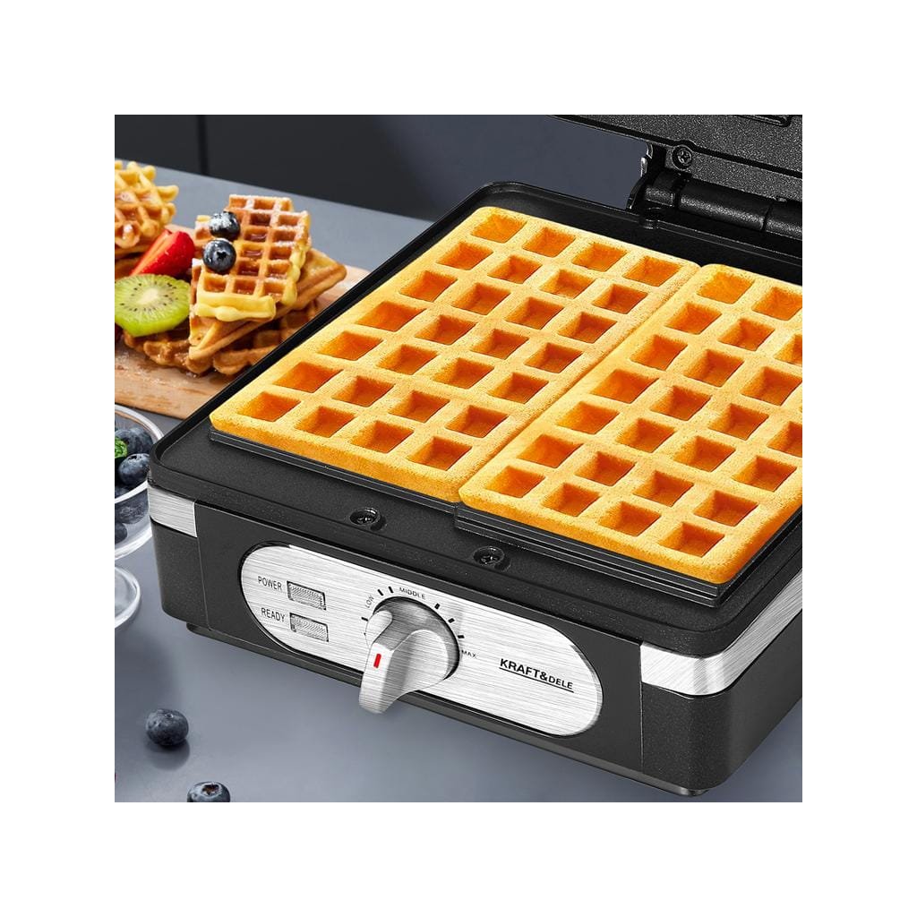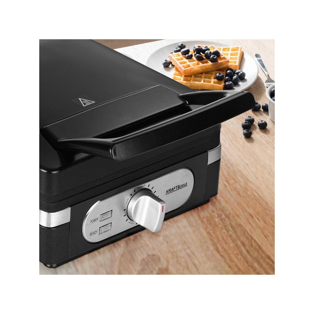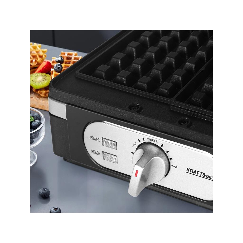 Užijte si gurmánské chvíle s Vaflovačem Kraft&Dele! Tento přístroj o výkonu 2000 W vám rychle připraví křupavé vafle. Snadné ovládání a údržba dělají z vaflovače skvělého společníka pro každodenní požitky. 3 úrovně teploty zajistí ideální křupavost, zatímco univerzální napájení umožňuje použití kdekoliv. Perfektní doplněk pro vaši moderní kuchyni, se zárukou 12 měsíců.