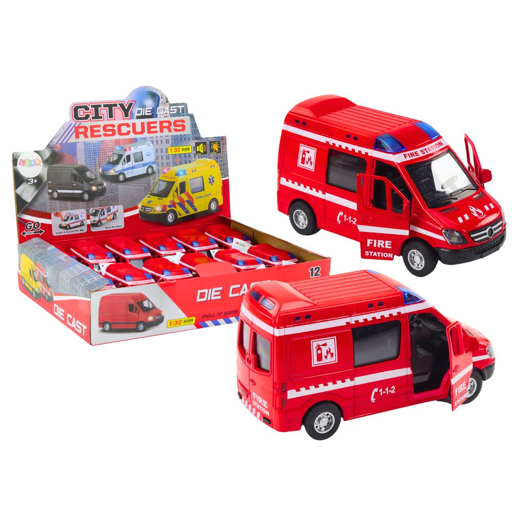 Hasičské Auto 1:32 Otevírací Dveře Světla Zvuky Pohon Červené
