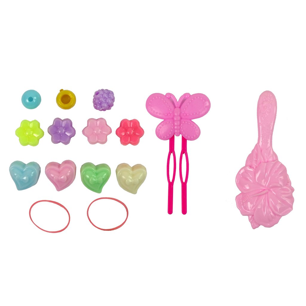 - Sada obsahuje barevné korálky, prameny a sponky, vhodné pro panenku i pro skutečné vlásky vaší malé stylistky.