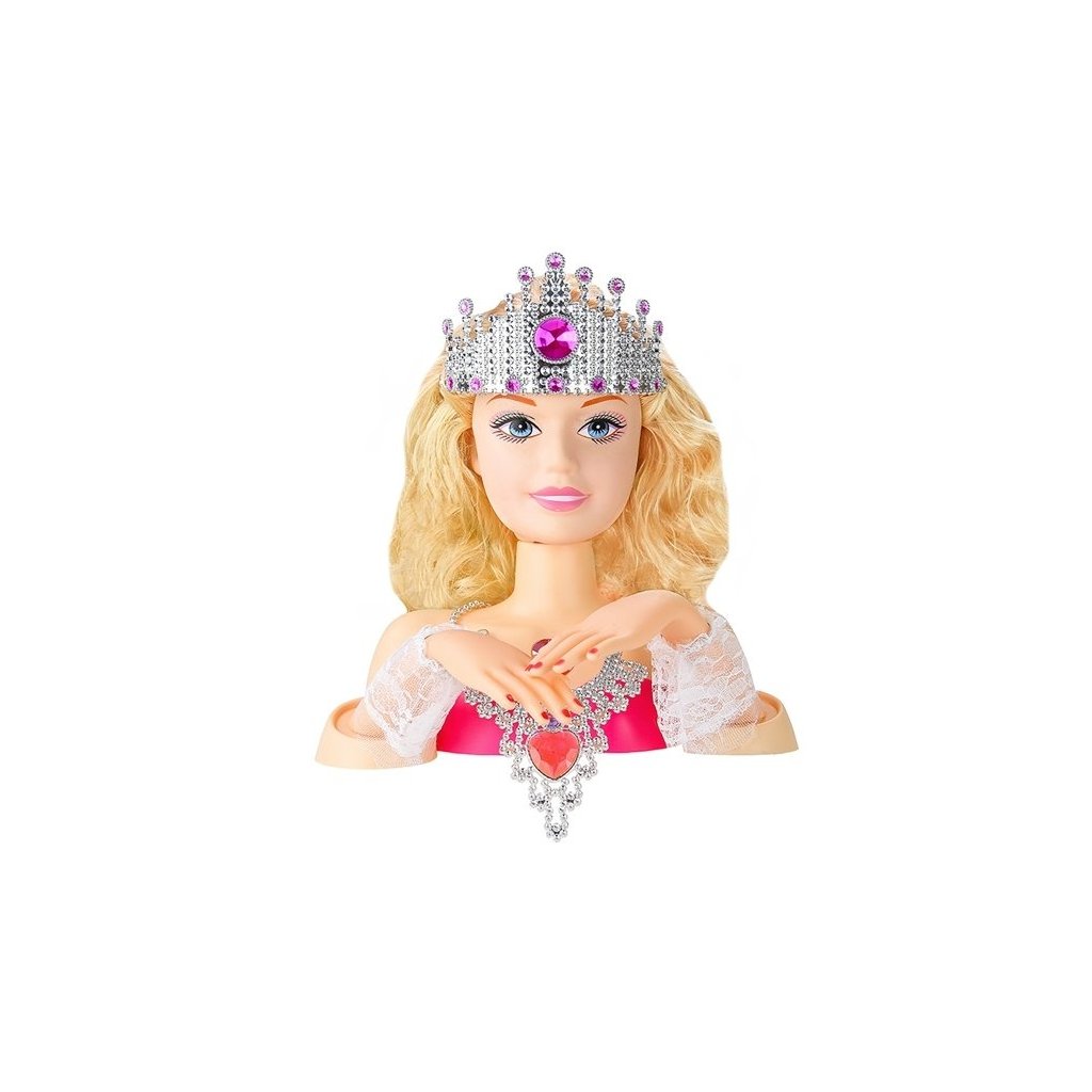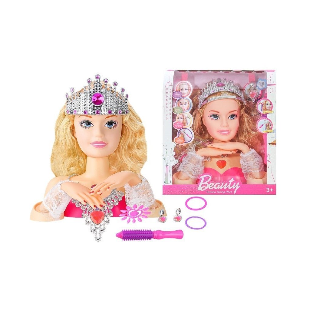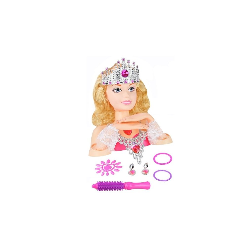 - Loutková hlava s korunou + doplňky Snad každá malá holčička miluje vymýšlení a vytváření bláznivých účesů