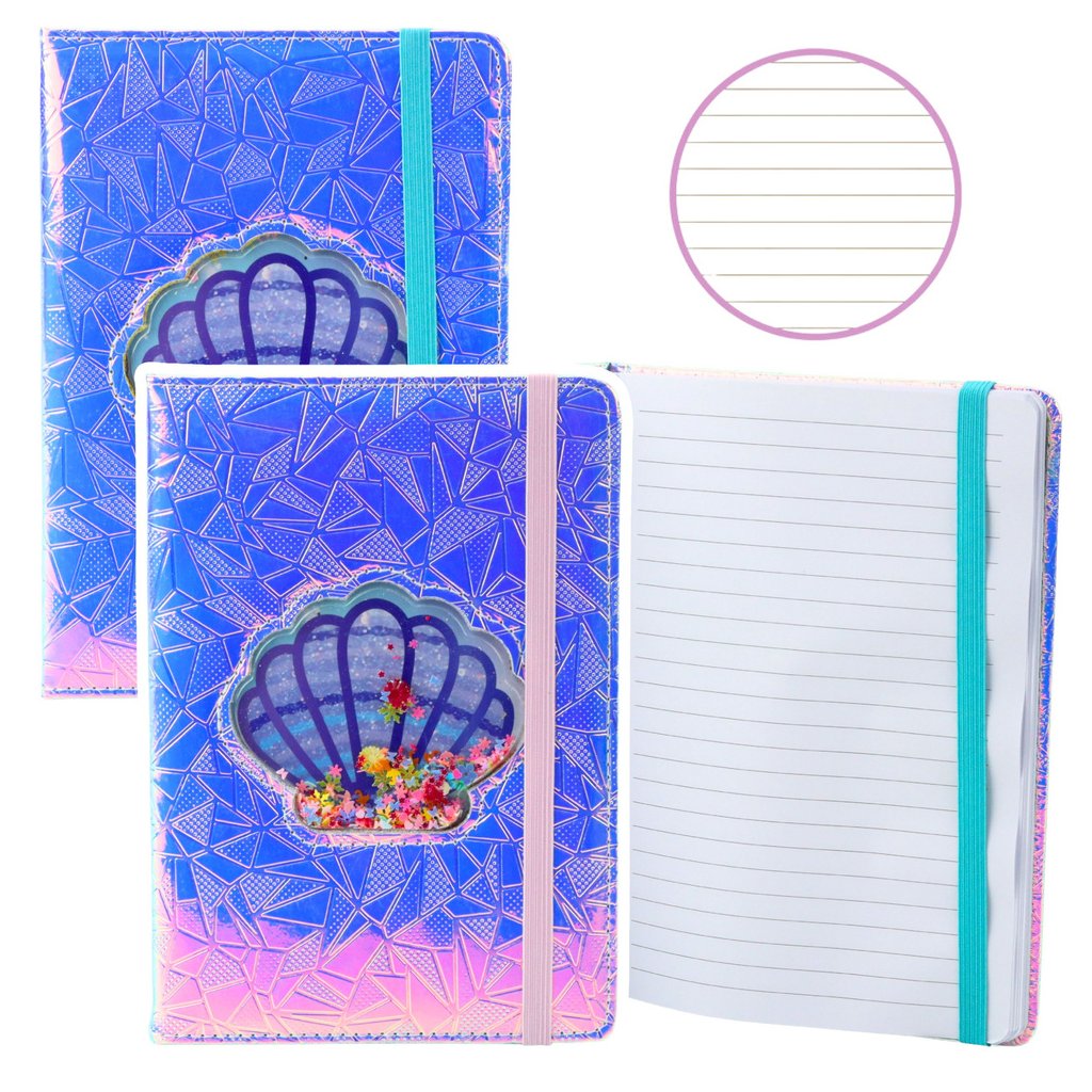 Holografický zápisník s liniemi a mušlí s konfetami A5, 70 listů je výjimečnou volbou pro každého, kdo si cení moderního stylu a efektních papírenských doplňků.