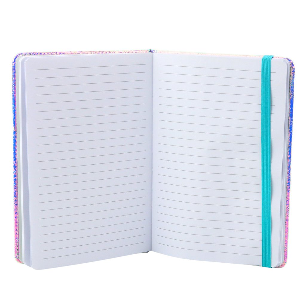 - S jeho holografickým vzorem na tvrdé obálce v odstínech růžové, fialové a modré se stává nejen praktickým nástrojem, ale i módním doplňkem, který upoutá pozornost