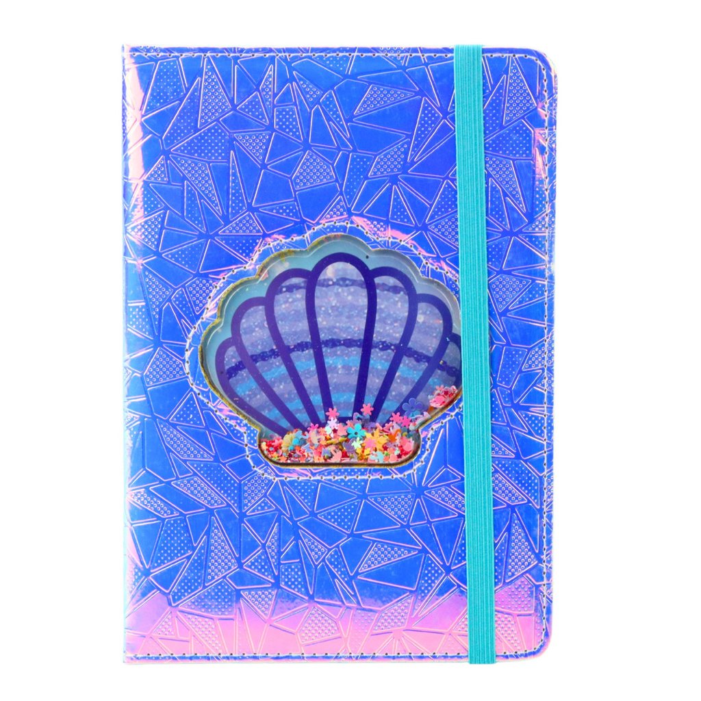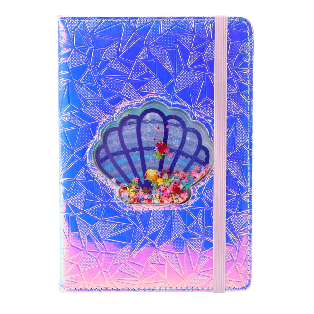 - Mušla s konfetami dodává zápisníku hravý a dynamický prvek, který přitáhne každého milovníka jedinečných detailů