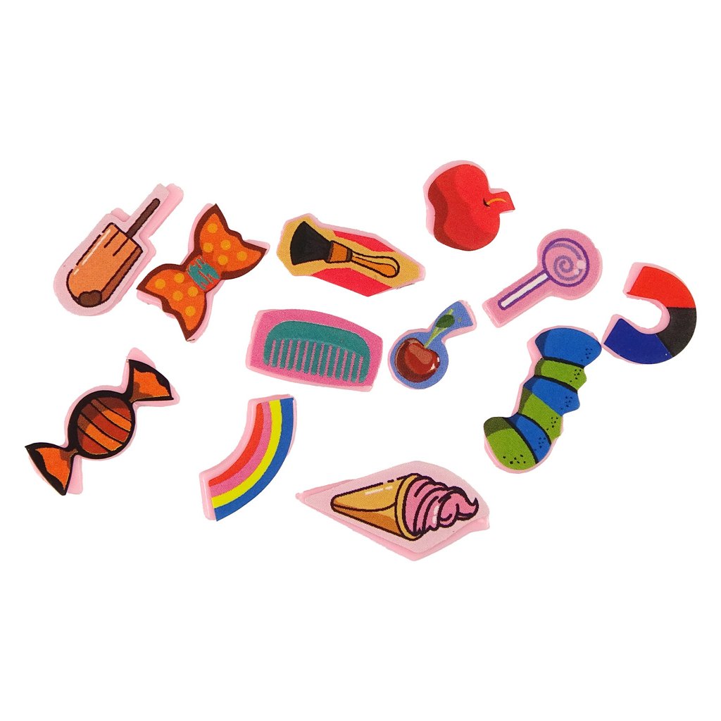 - Na hracím plánu je 12 různých míst na těle jednorožce, na která je třeba položit malé prvky/jídlo