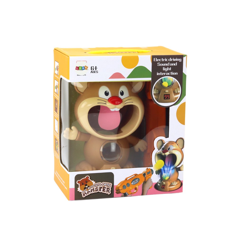 Během hraní vám bude příjemná hudba zpříjemňovat čas a vytvoří ještě příjemnější atmosféru celé hry. Hra Dovednostní Střílení Na Křečka se velmi snadno používá. Stačí nahrát pistoli měkkými kuličkami a zamířit na křečkova ústa. Když trefíte křečkovo jazyk, hra vám dá zvukovou odezvu a na malém LCD displeji uvidíte svůj bodový stav. V balení najdete pistoli a speciální měkké kuličky pro hodiny nekonečné zábavy.
