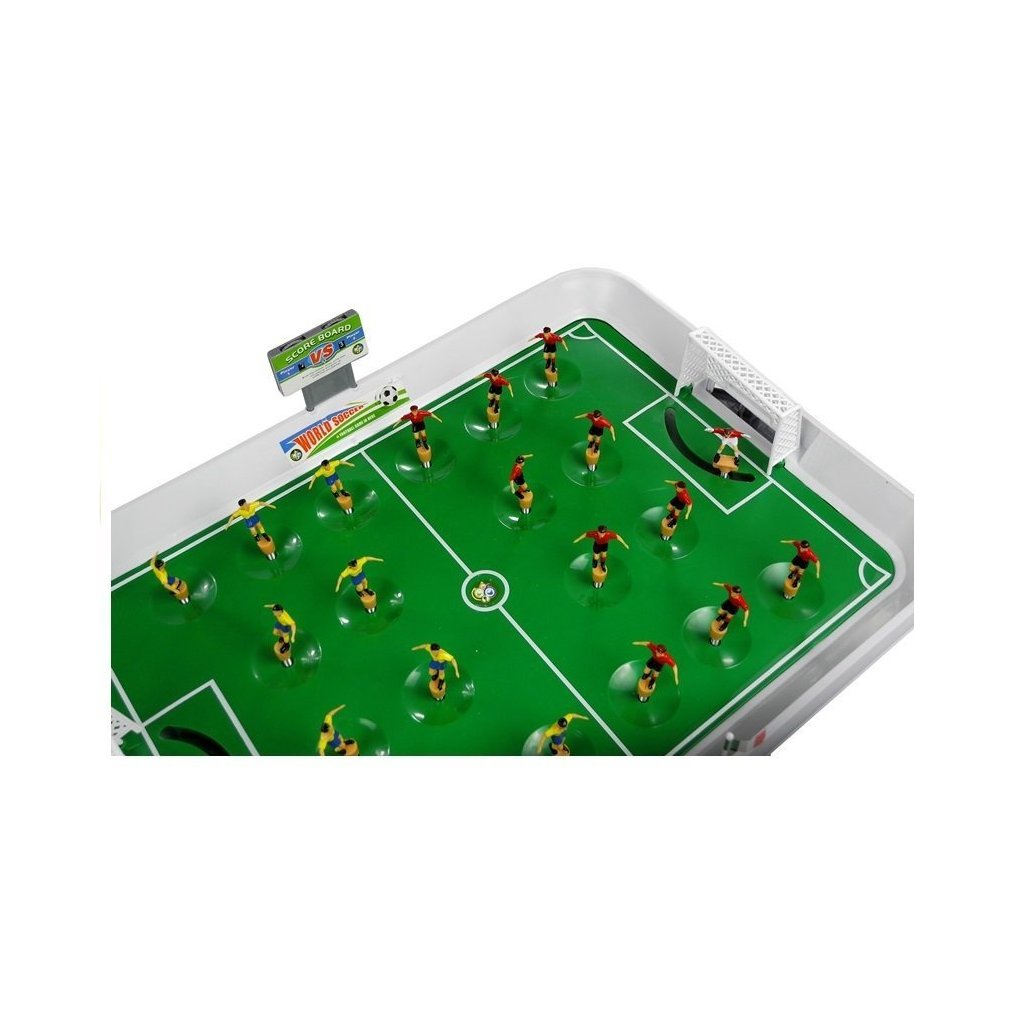 Prezentovaný model je velká sada – skládá se z hřiště a dvou kompletních týmů, každý s jedenácti hráči. Figurka brankáře je pohyblivá, takže pro zpestření hry s ní můžete hýbat, aby chytře bránila branku. Pozvěte několik lidí a uspořádejte skutečný fotbalový turnaj nebo mistrovství světa.