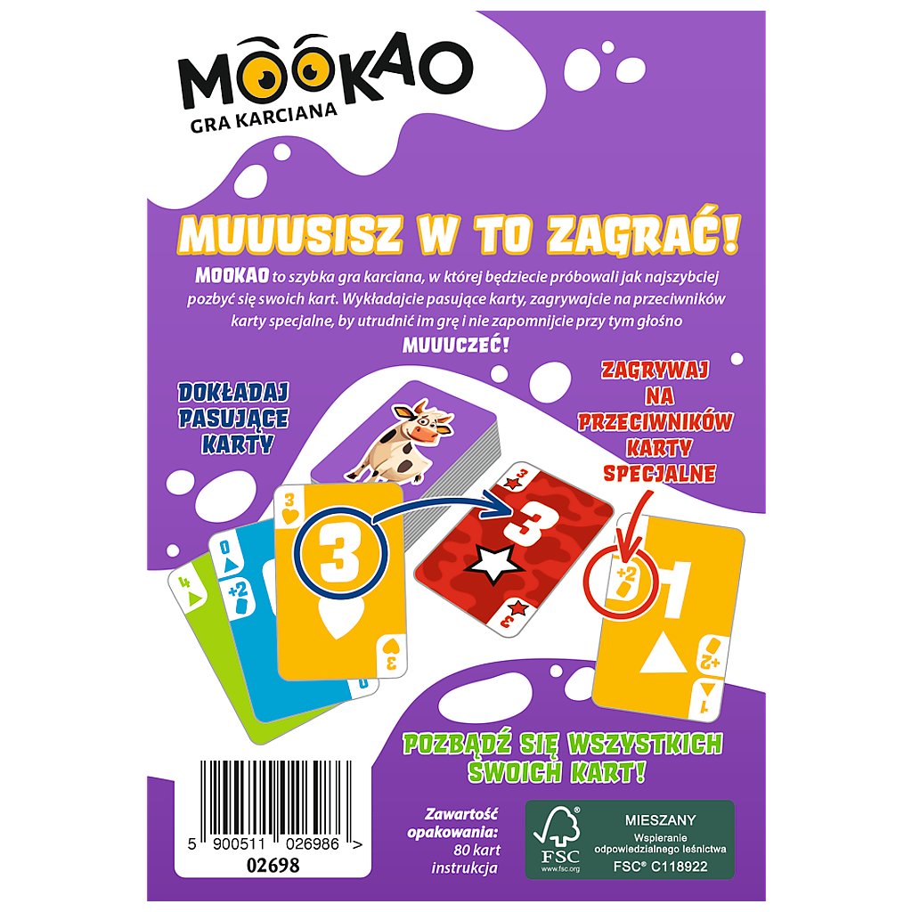Hra MooKao Trefl 02698 je dynamická karetní hra, kterou si muuuusíte zahrát! Vaším úkolem je co nejrychleji se zbavit svých karet z ruky