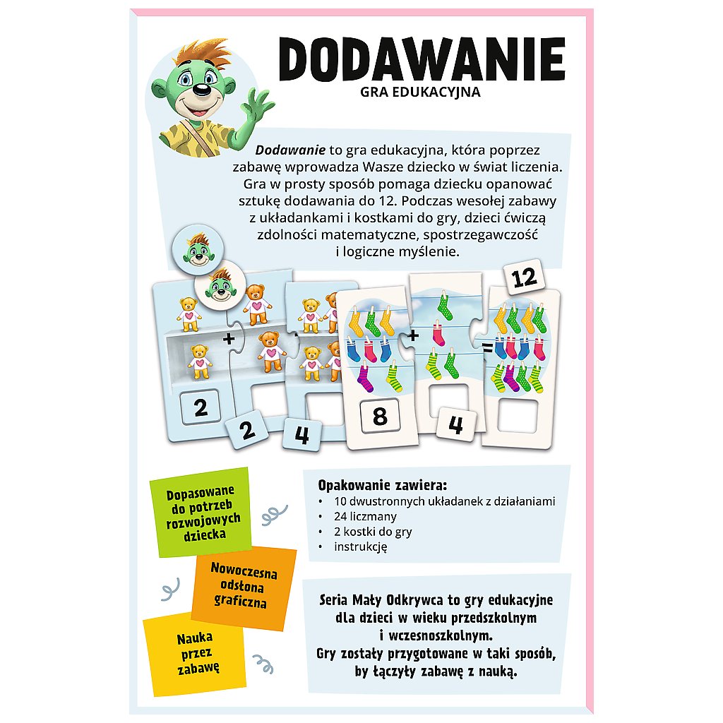 - Sčítání/Malý Objevitel Trefl 02805 je vzdělávací skládanka pro předškoláky, která dětem přátelským způsobem přibližuje svět sčítání