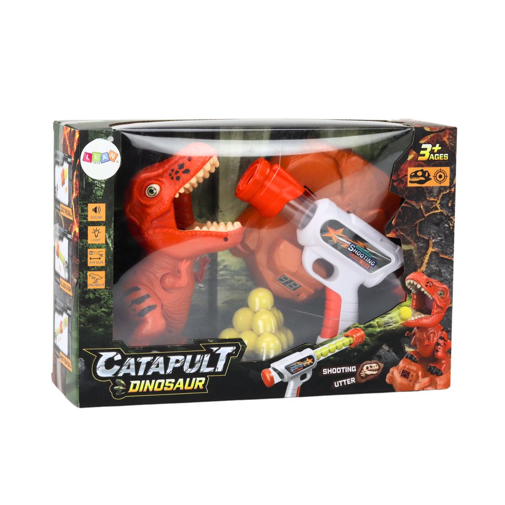 - Děti budou nadšeny, když vystřelí pěnové kulky z bezpečné pistole, a pokusí se zasáhnout cíl v otevřené tlamě dinosaura